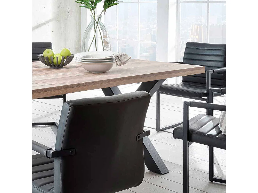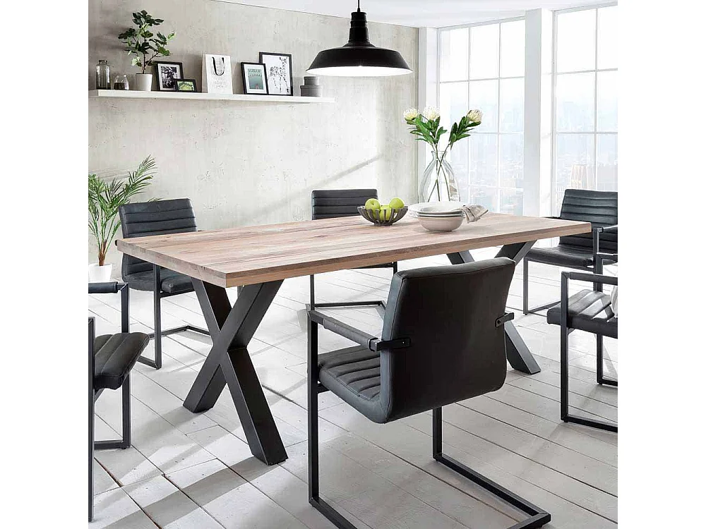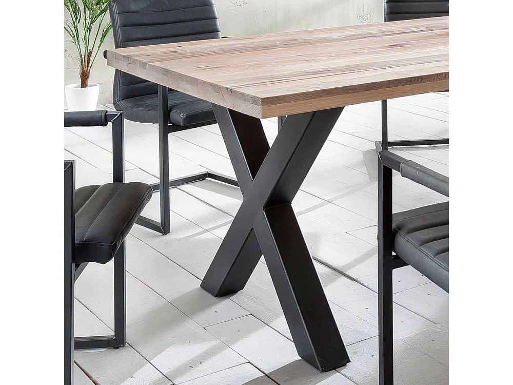 Esszimmertisch mit X Fußgestell Eiche massiv gekälkt
