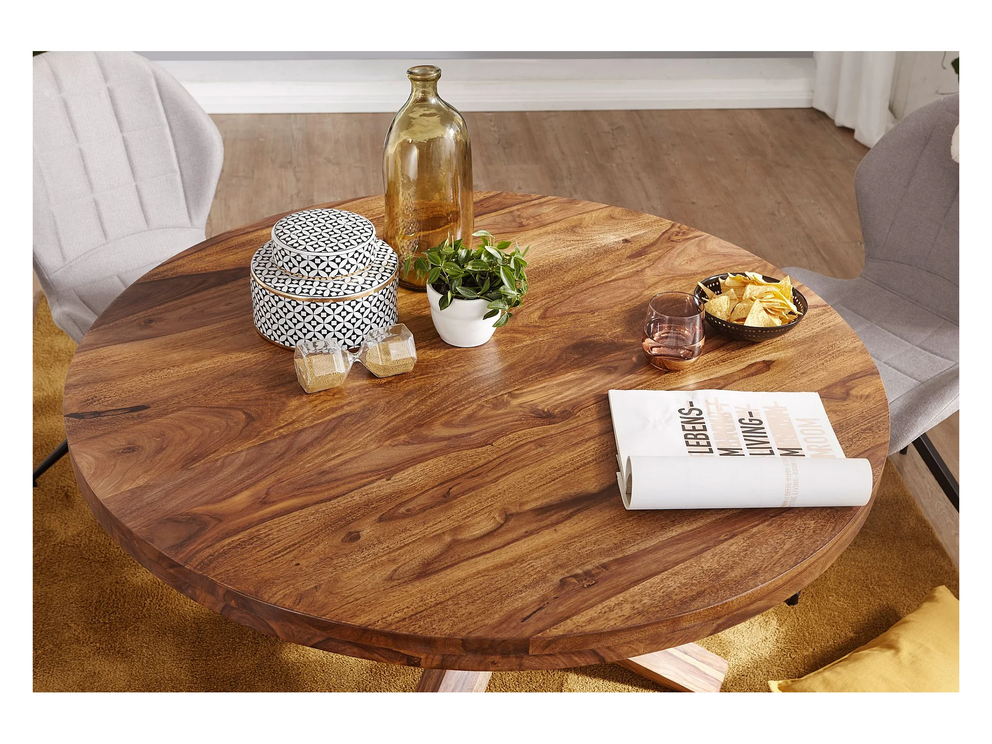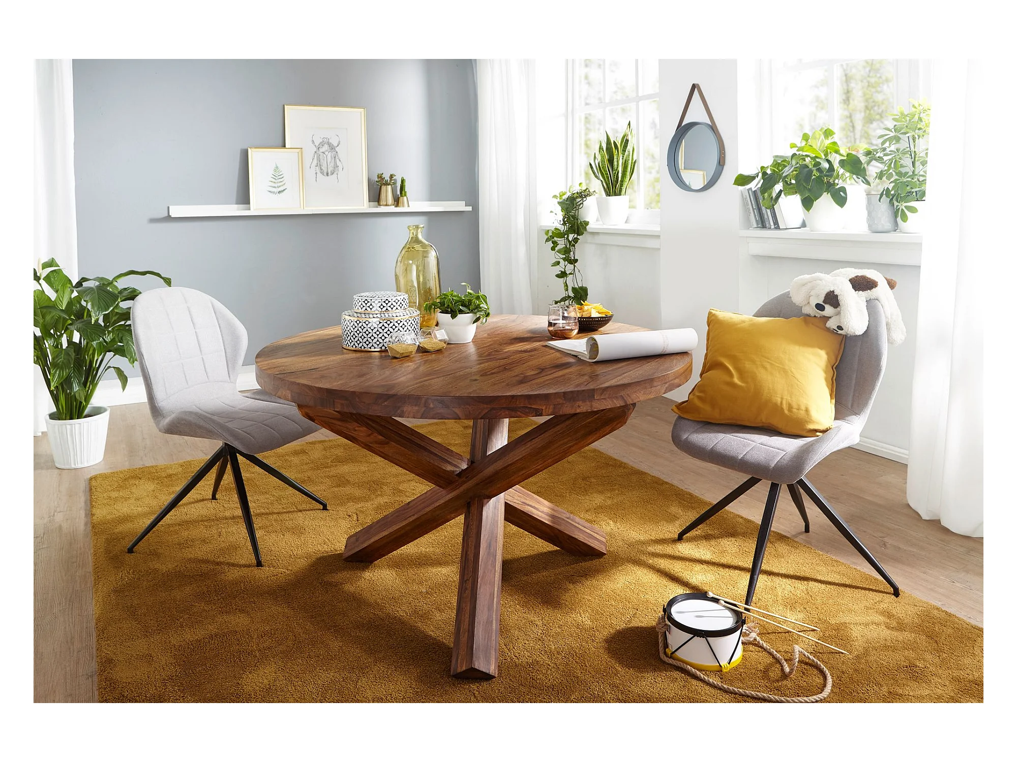 Esszimmertisch rund Ø 120 cm Sheesham Massiv-Holz Esstisch Küchentisch