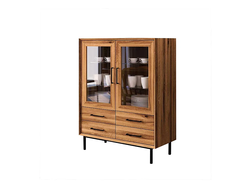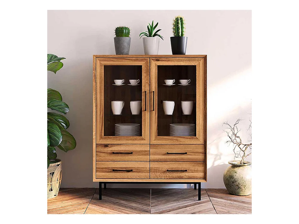 Esszimmervitrine massiv aus Wildeiche und Metall vier Schubladen