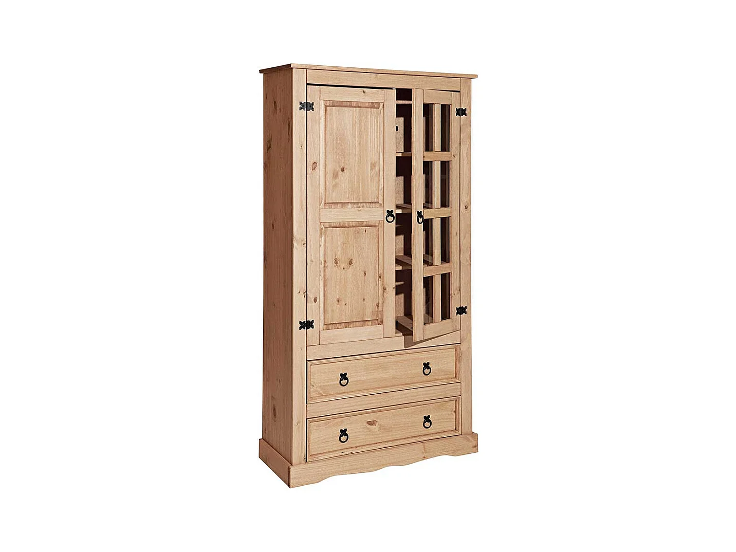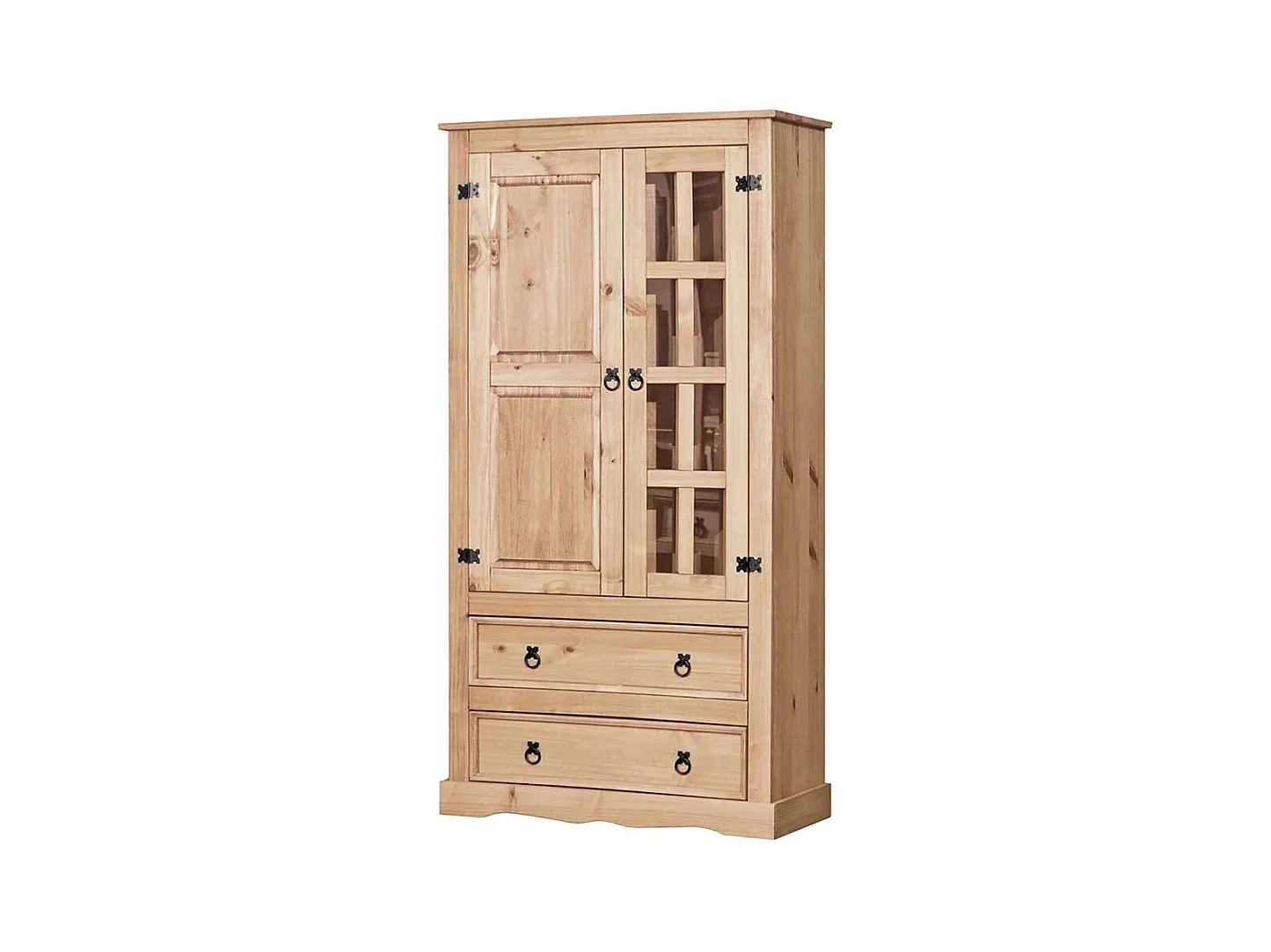 Esszimmervitrinenschrank aus Kiefer Massivholz Honigfarben