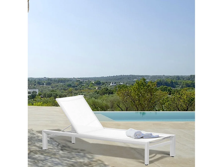 Estosa – Gartenliege mit Aluminiumrädern und weißem Textilene