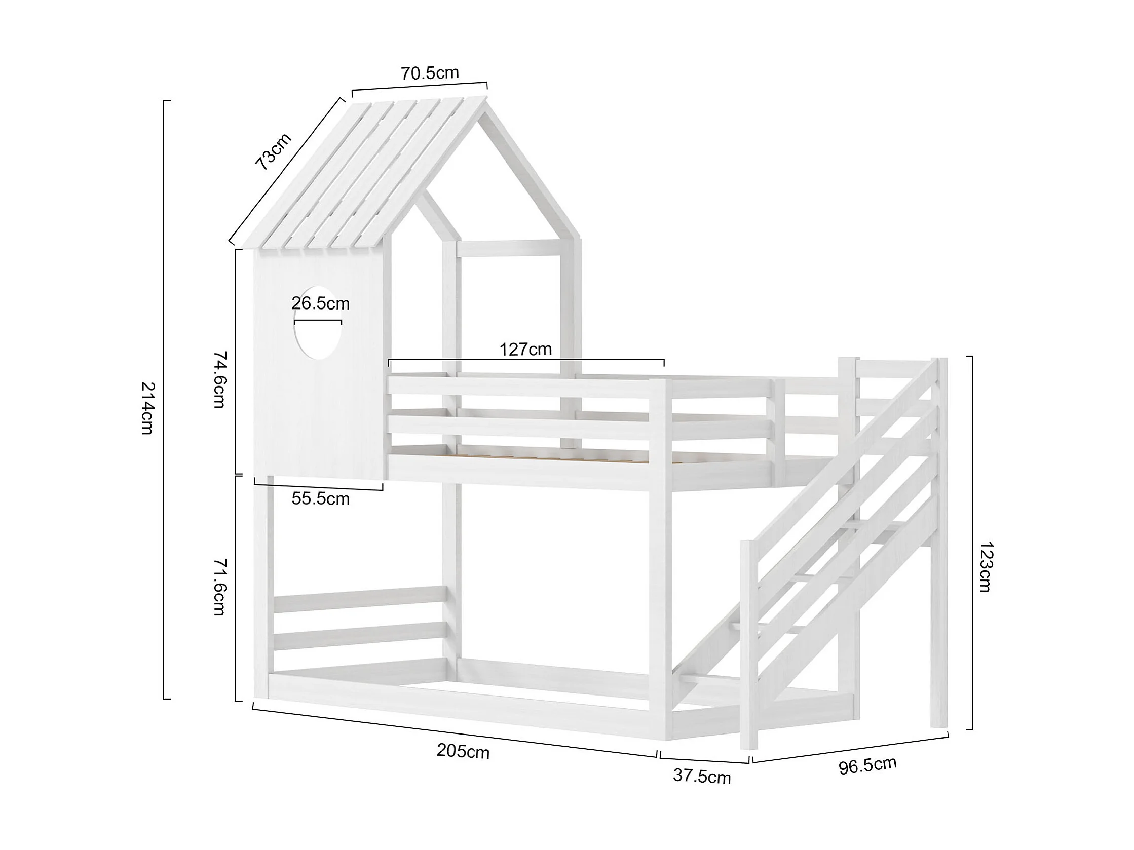 Etagenbett 2x90x200 cm aus Kiefernholz - Mit Treppe und Lattenrost - Farbe Weiß