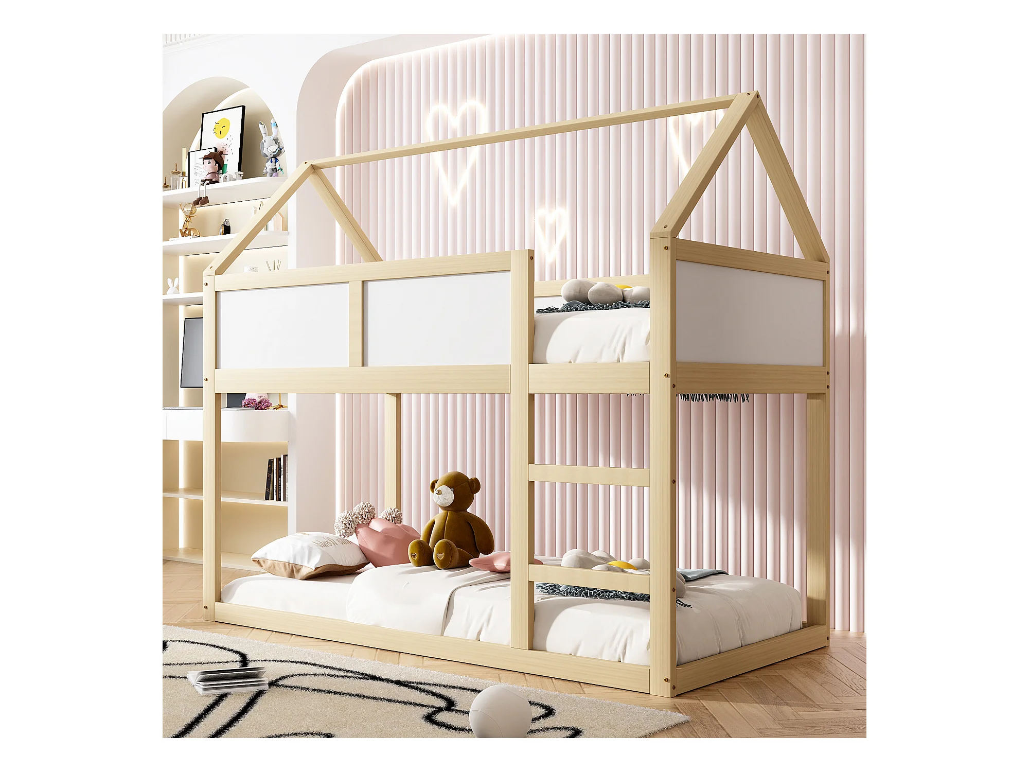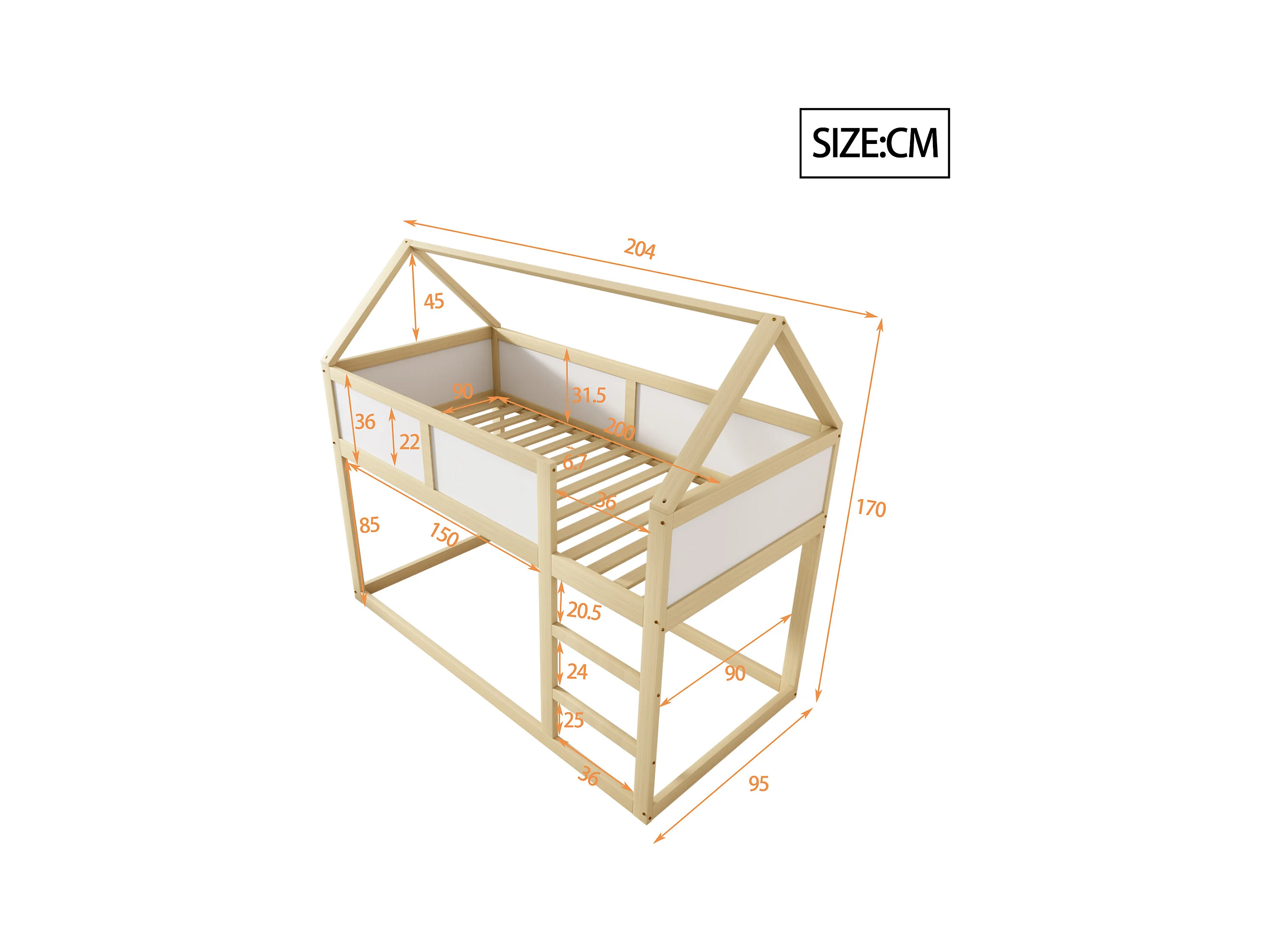 Etagenbett 90 x 200 cm – Kinderbett mit Treppe und Holzrahmen – Holzfarbe – ohne Matratze