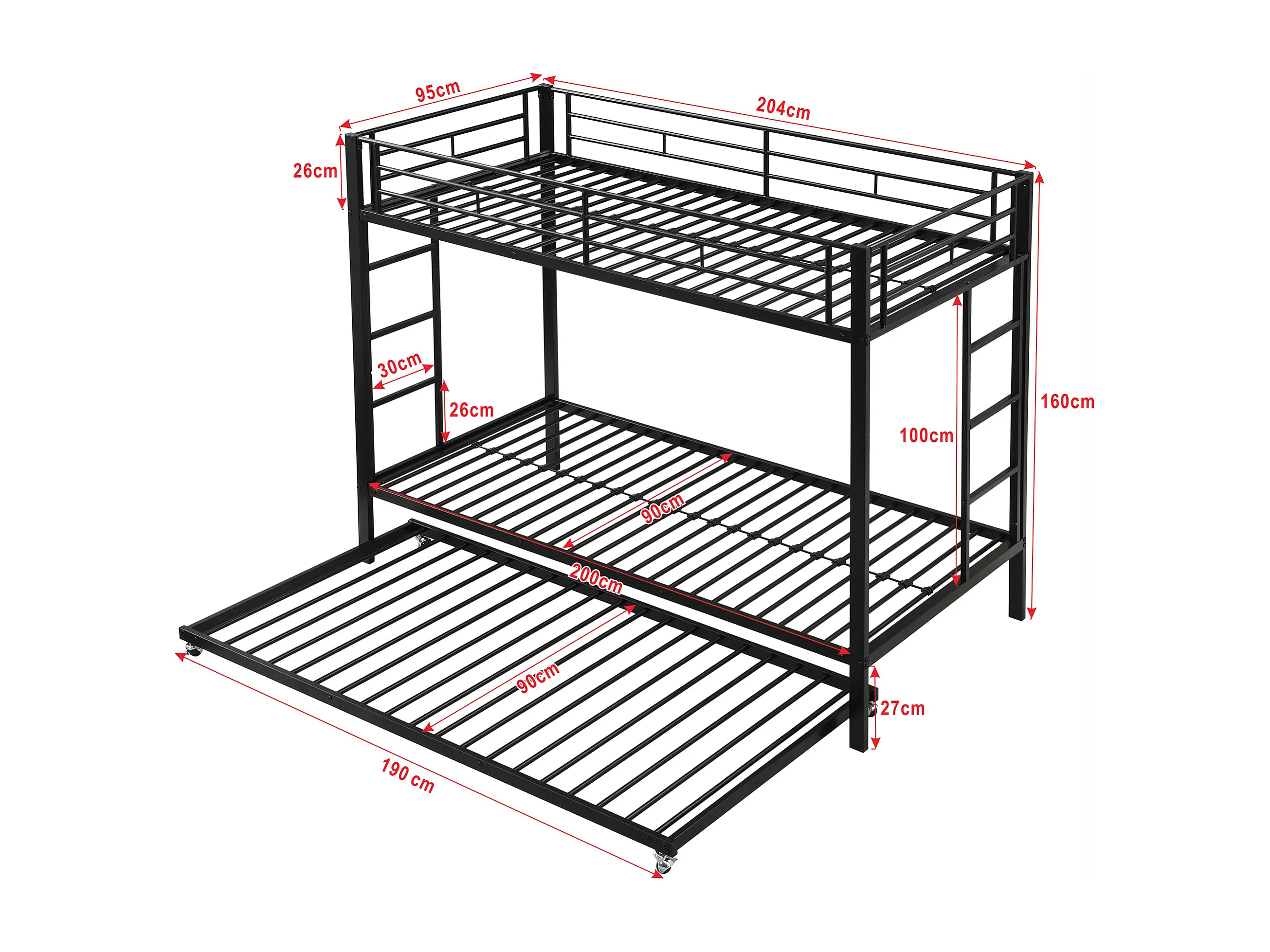 Etagenbett 90 x 200 cm – Metall – schwarz