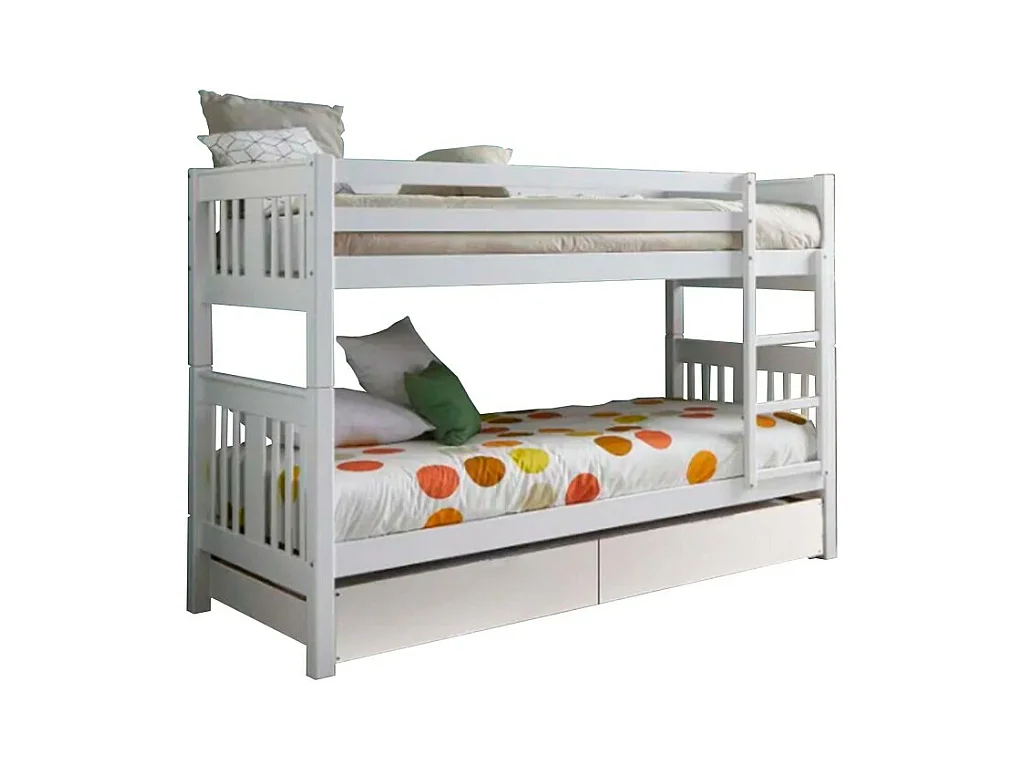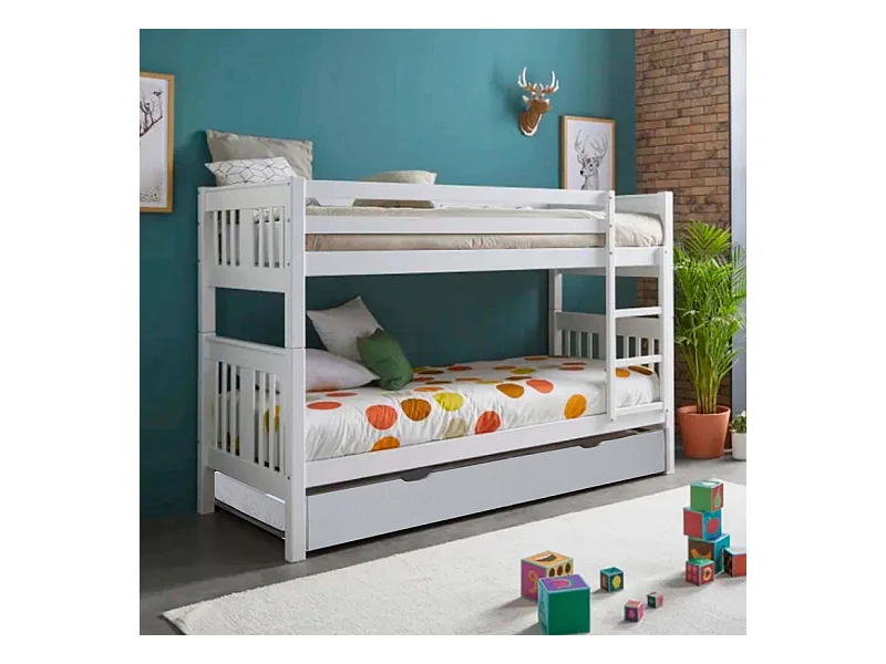 Etagenbett + Ausziehbett aus Holz weiß 90x190cm