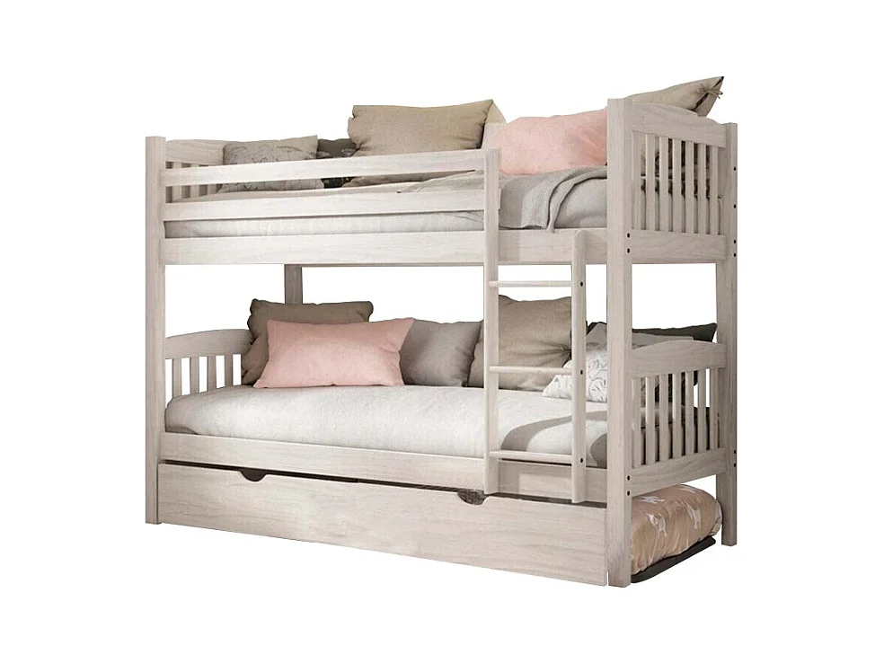 Etagenbett + Ausziehbett mit Beine Holz weiß decapé 90x190cm