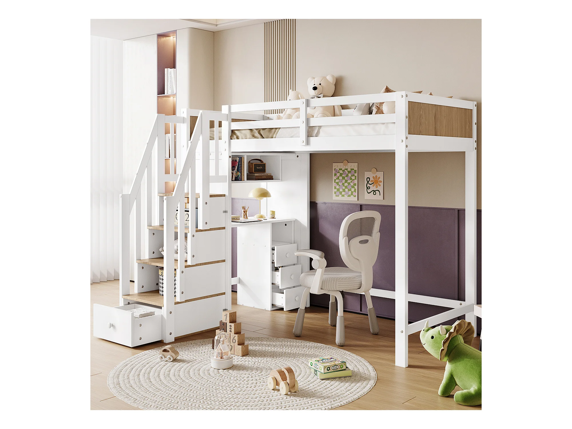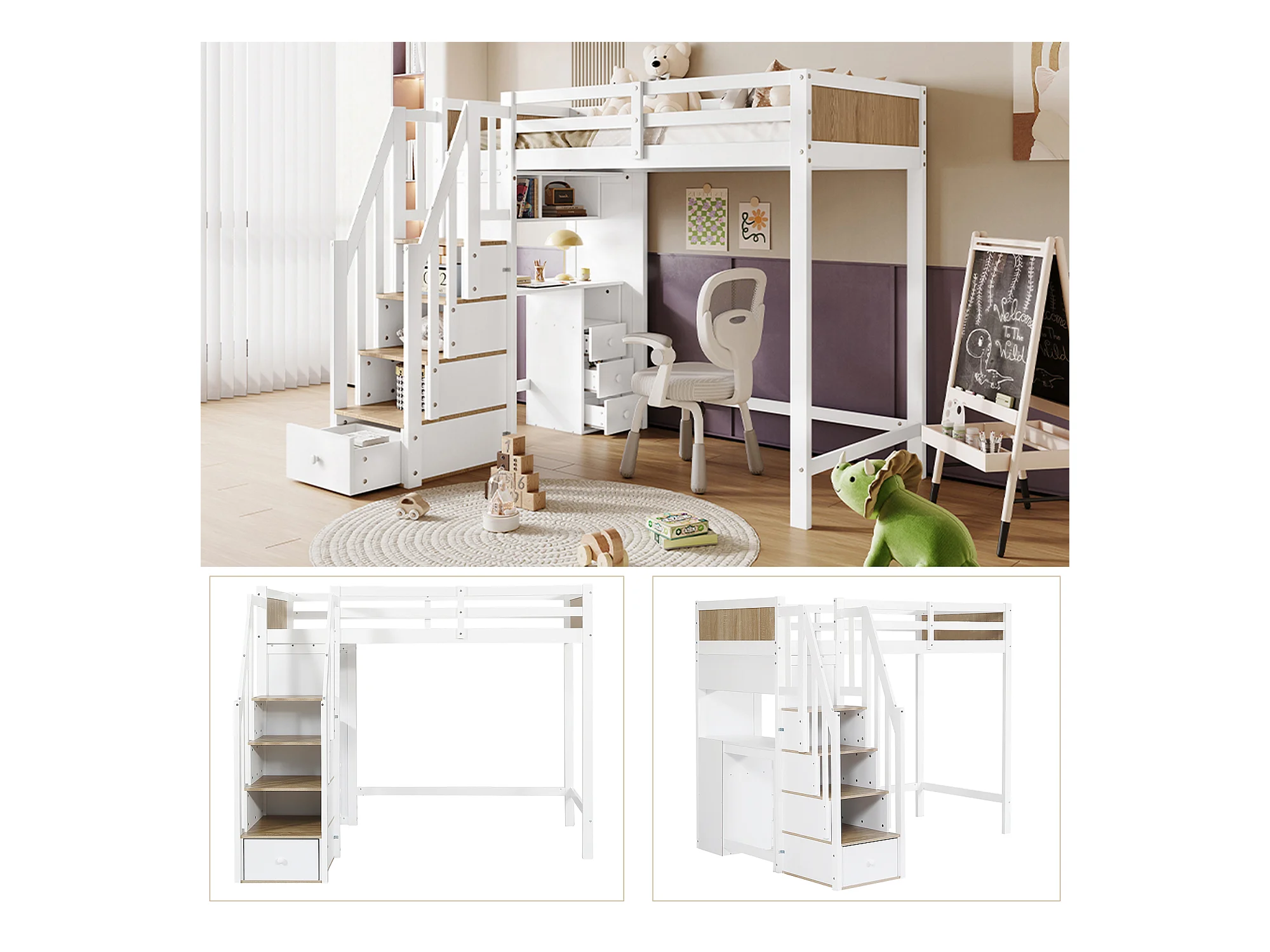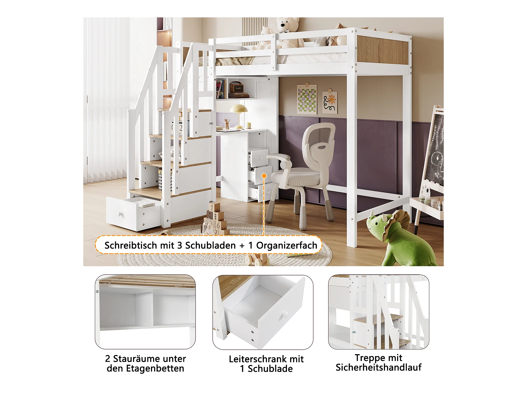 Etagenbett, Kinderbett, Mit farblich abgesetztem Fallschutzgitter