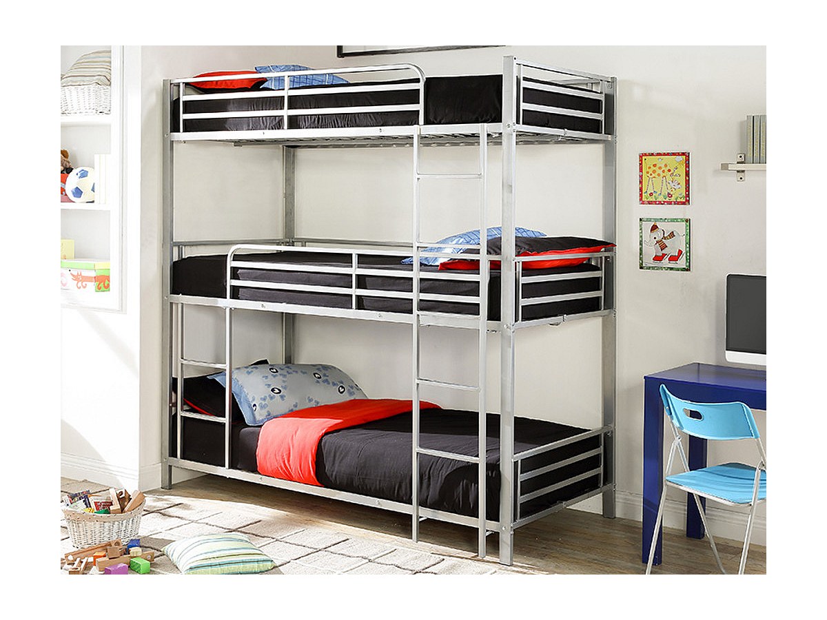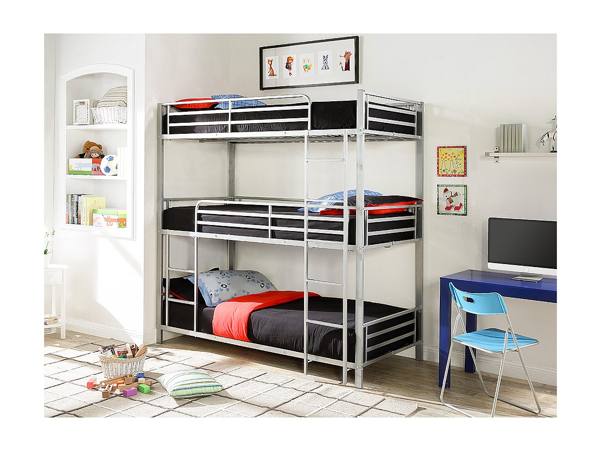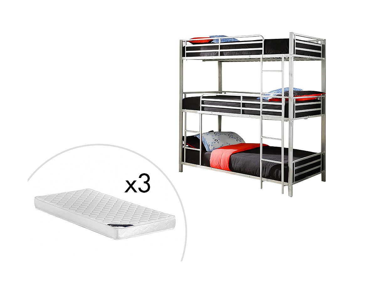 Etagenbett mit 3 Etagen ELOUAN - 3 x 90 x 190 cm - Grau + Matratzen