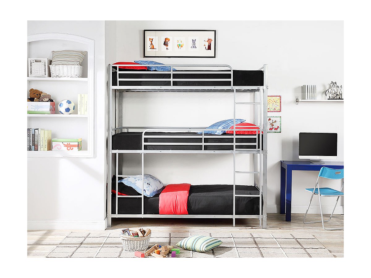 Das super praktische und platzsparende Etagenbett mit Bettboden Elouan besitzt 3 Liegeflächen à 90x190 cm! Praktisch und robust, ist das Metallbett ideal für's Kinderzimmer und garantiert eine lange Lebensdauer!
