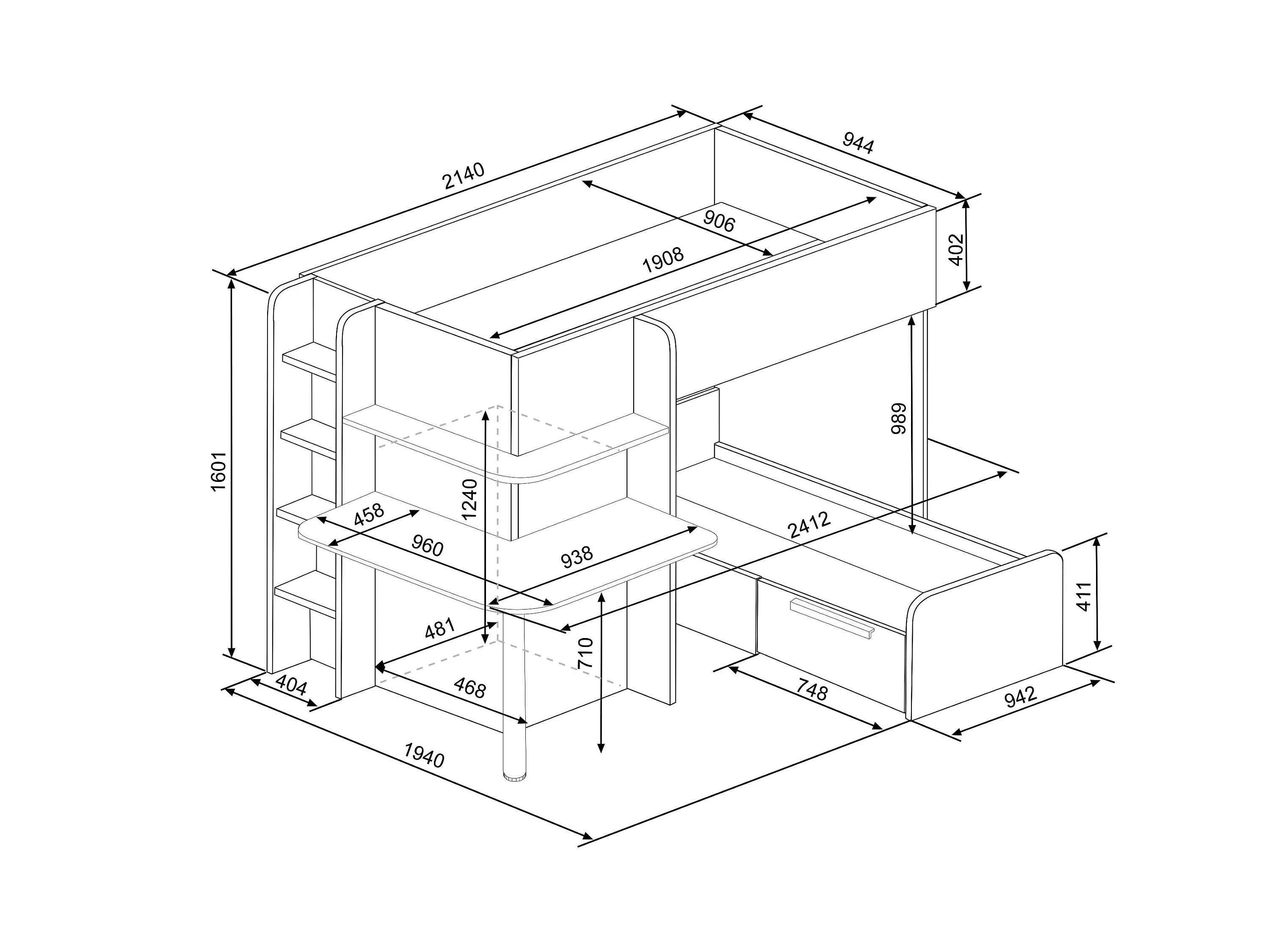 • Integrierter Schreibtisch