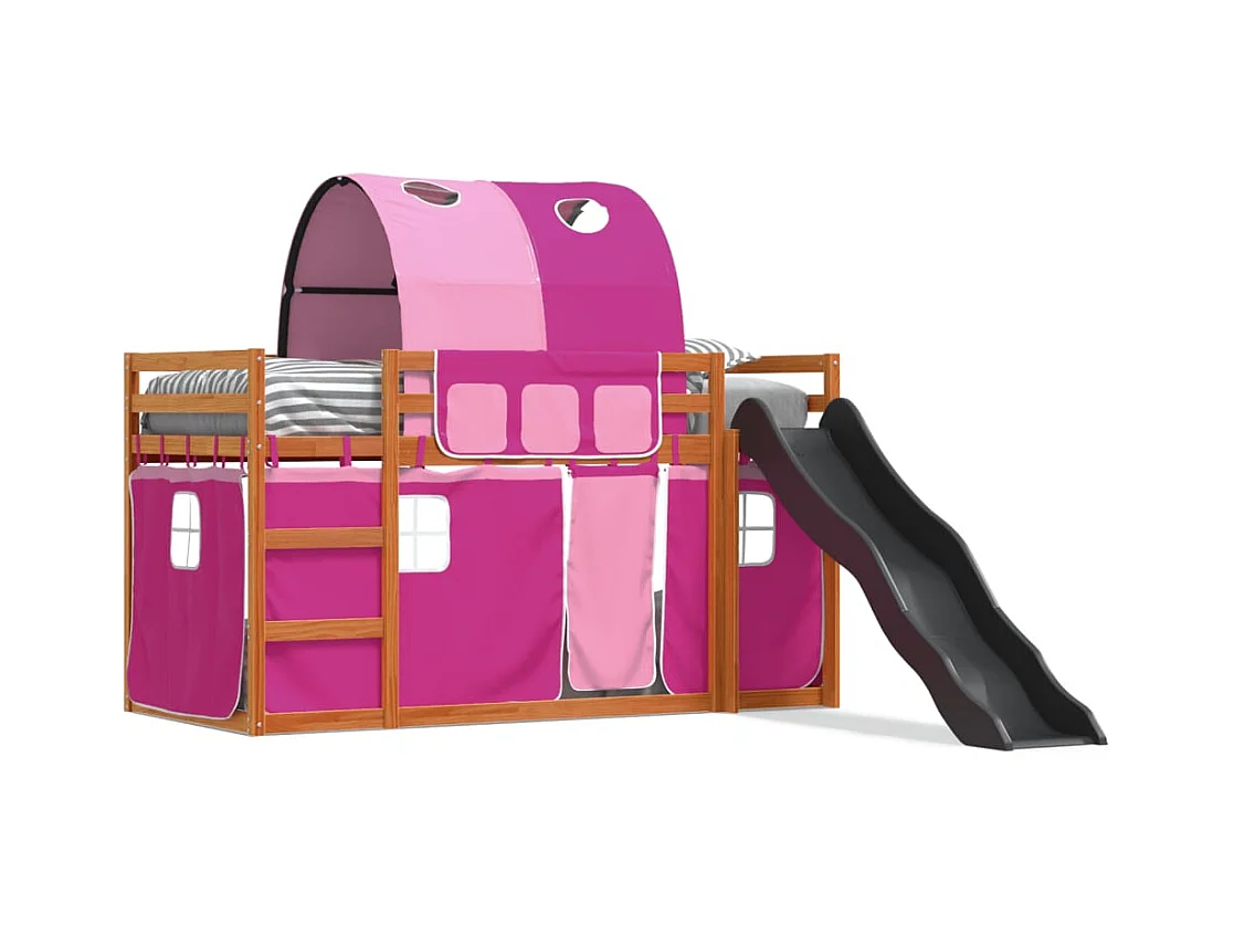 Etagenbett mit Rutsche und Gardinen Rosa 90x200 cm