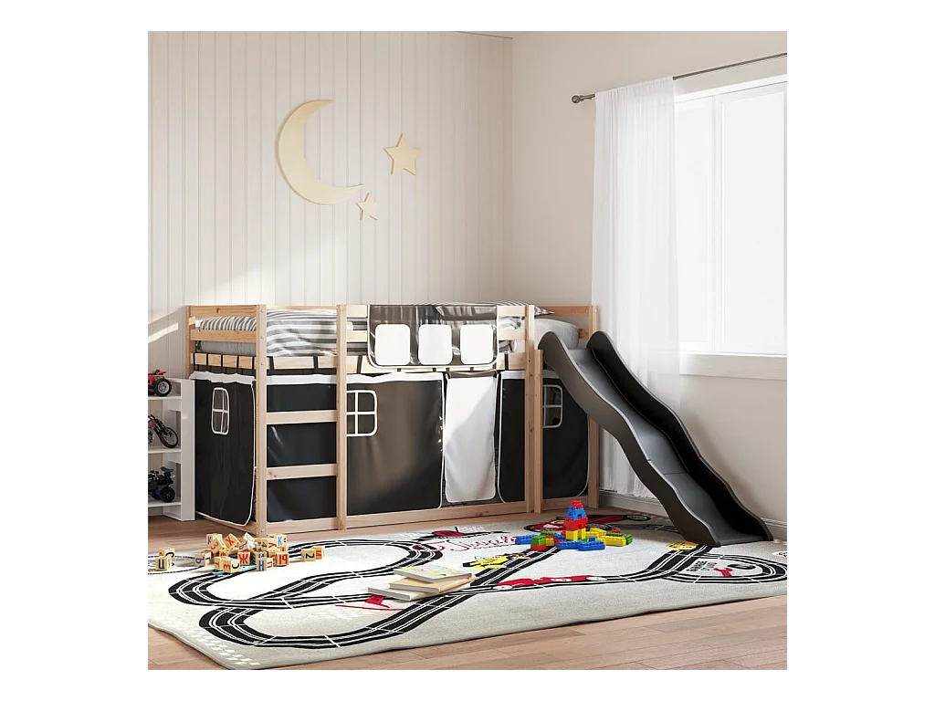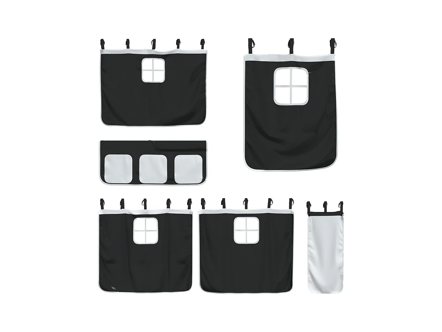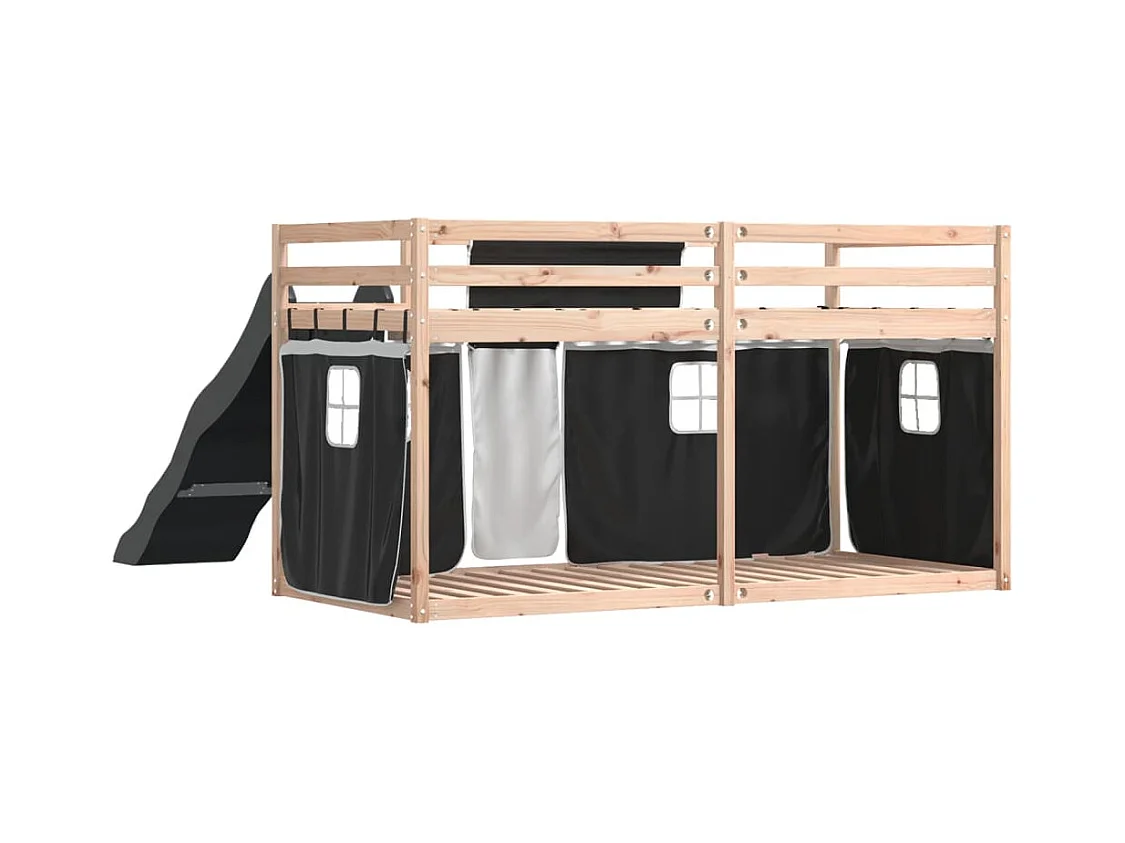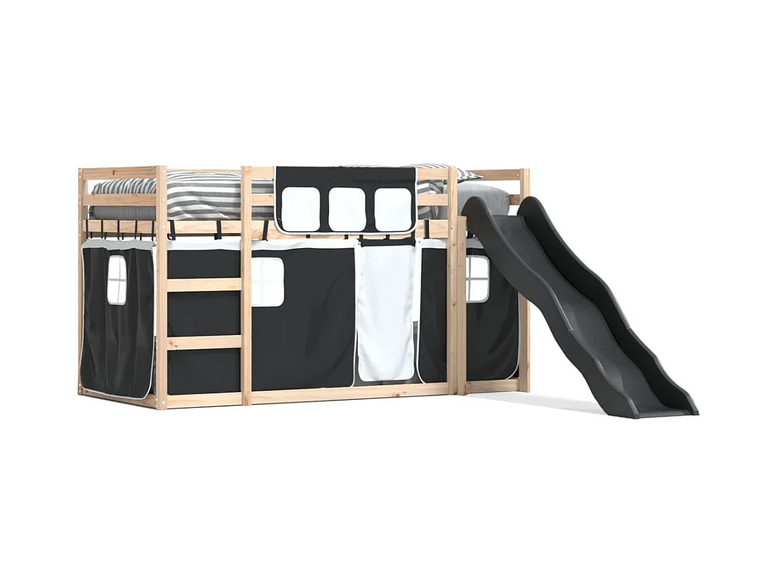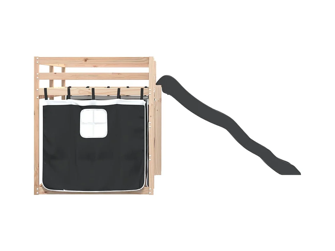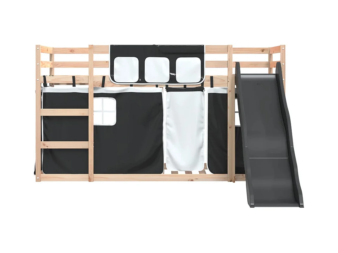 Etagenbett mit Rutsche und Gardinen Weiß und Schwarz 80x200 cm
