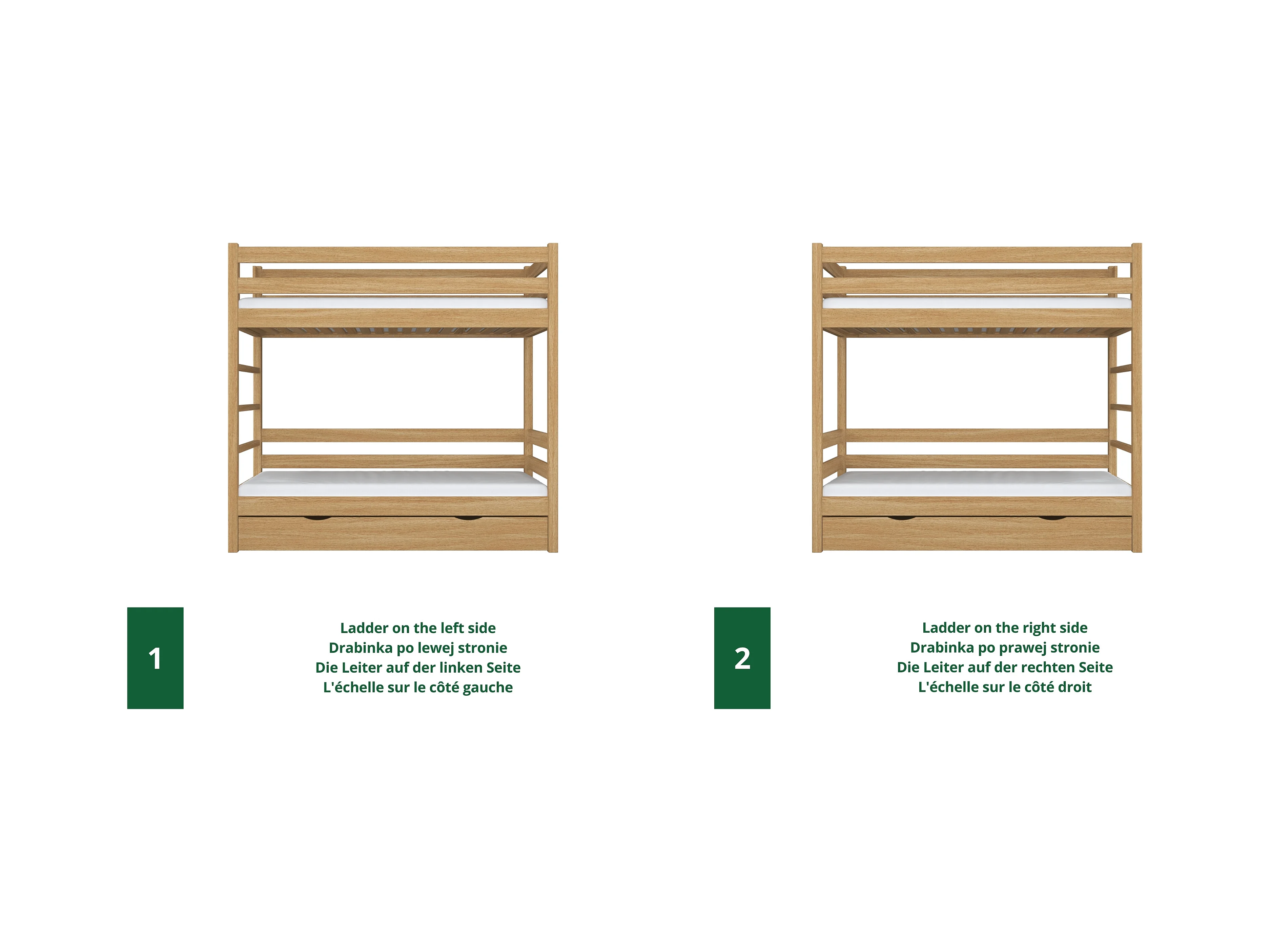 ETAGENBETT N03 mit Schublade Eiche Natur 100x200