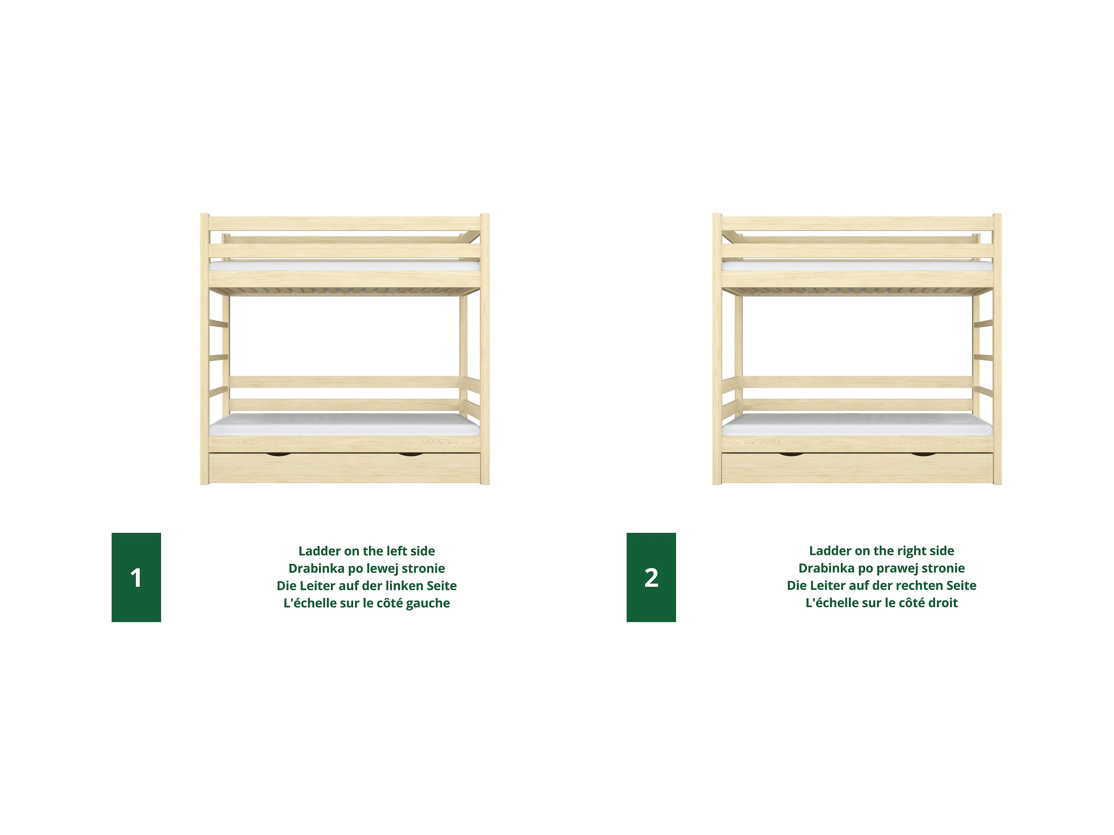 ETAGENBETT N03 mit Schublade Klare Kiefer 120x180