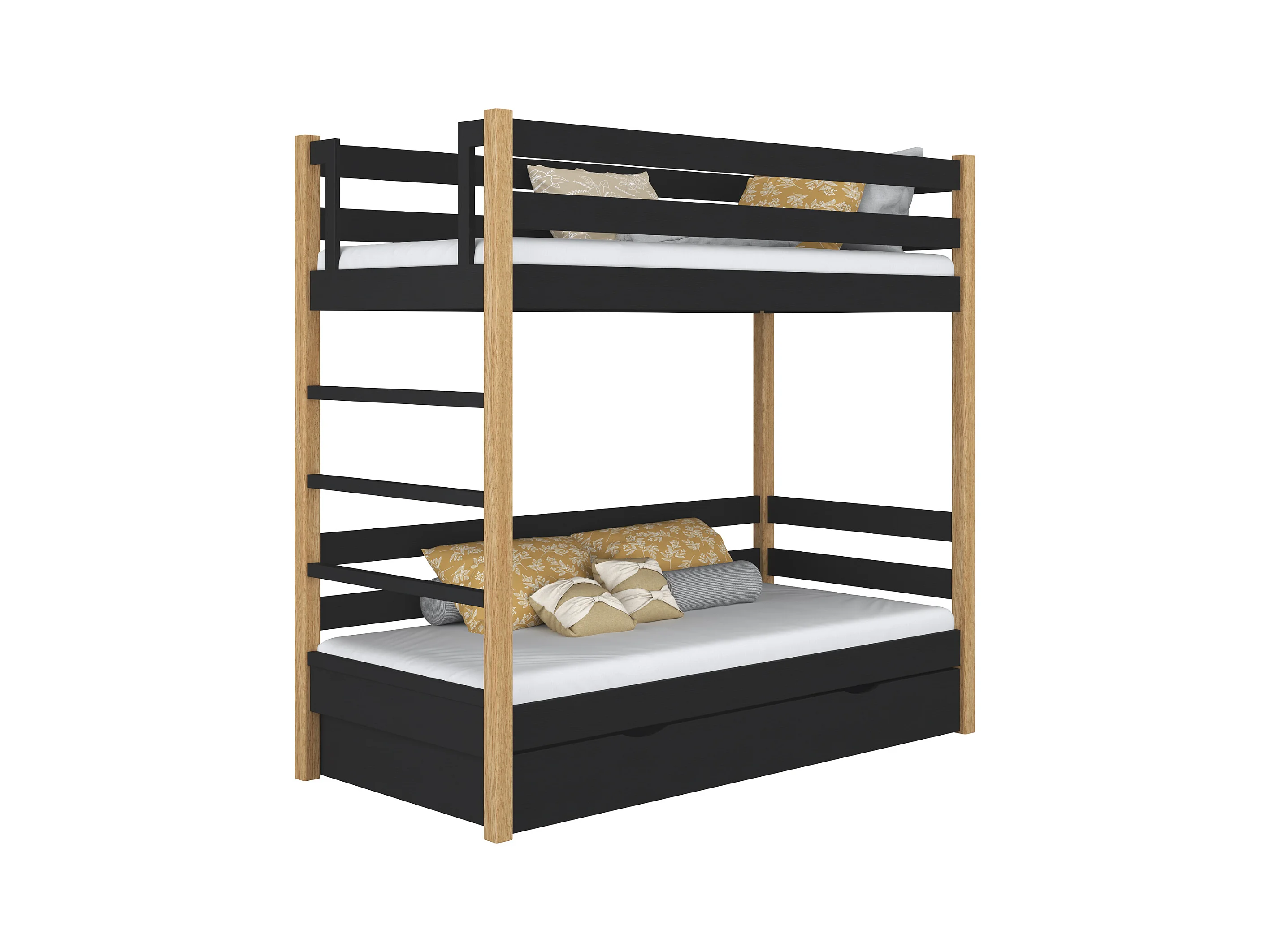 ETAGENBETT N03 mit Schublade Schwarz / Eiche Natur 100x190
