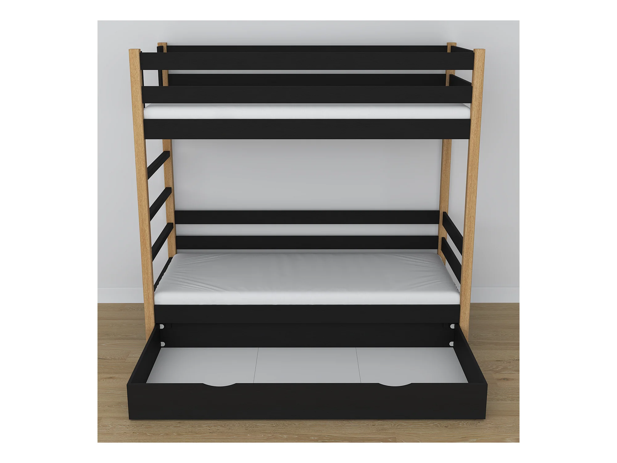 ETAGENBETT N03 mit Schublade Schwarz / Eiche Natur 90x180