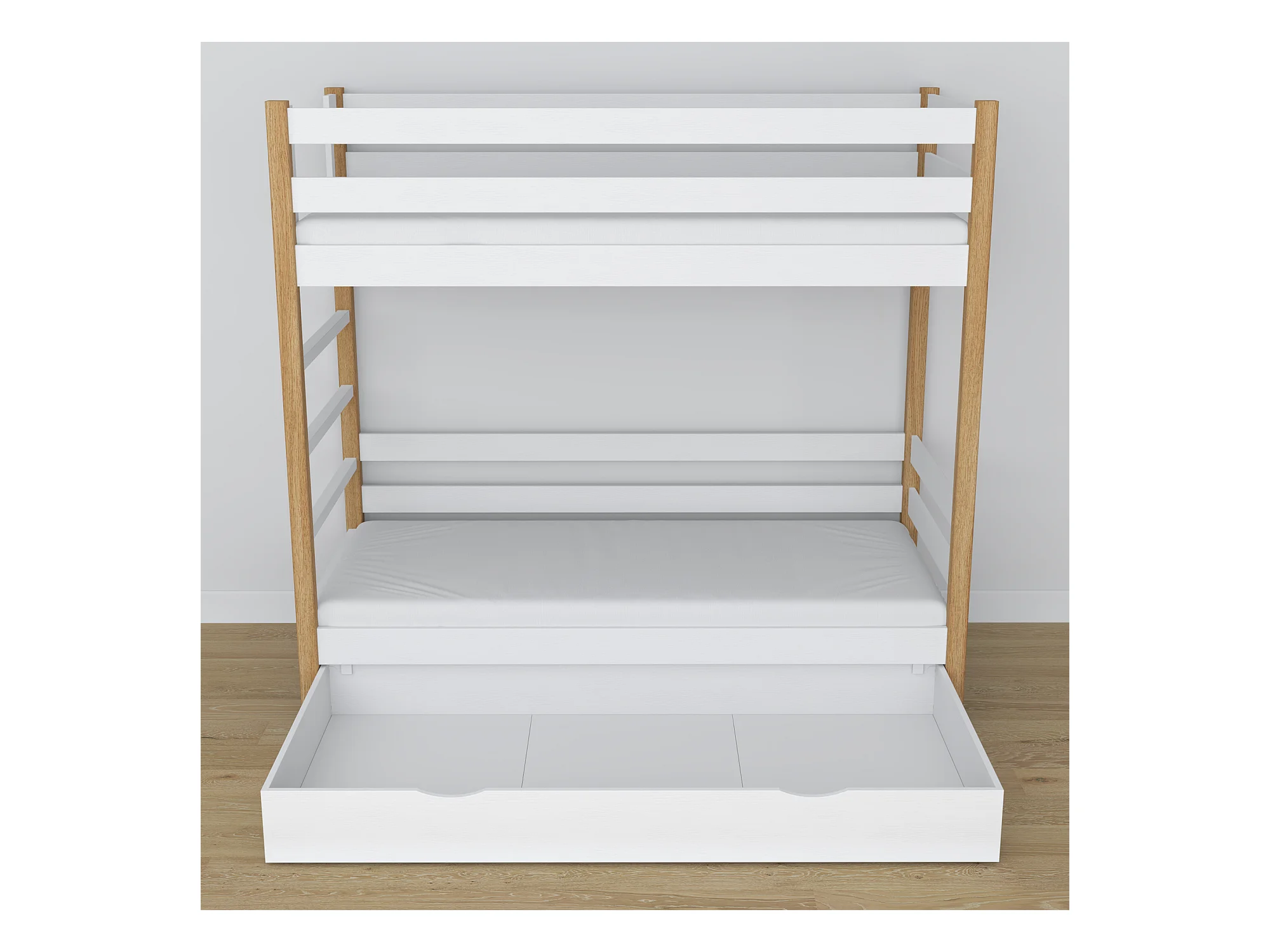 ETAGENBETT N03 mit Schublade Weiß / Eiche Natur 90x180