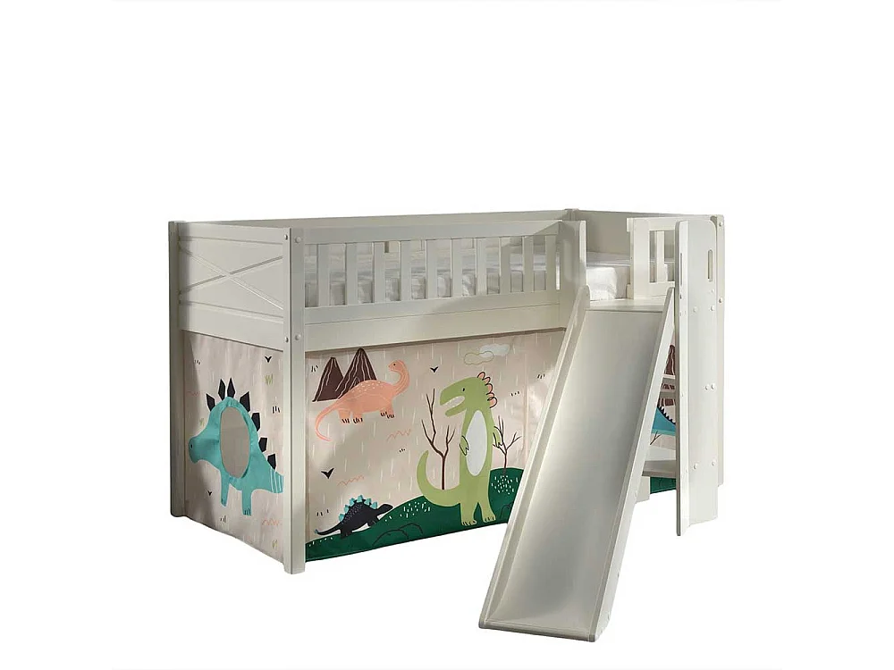 Etagenbett mit Vorhang aus Kiefer Massivholz Dinosaurier Motiv