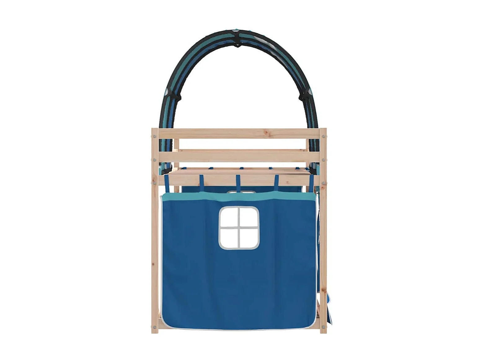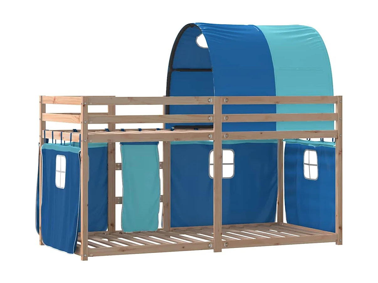 Etagenbett mit Vorhängen Blau 90x200 cm Massivholz Kiefer