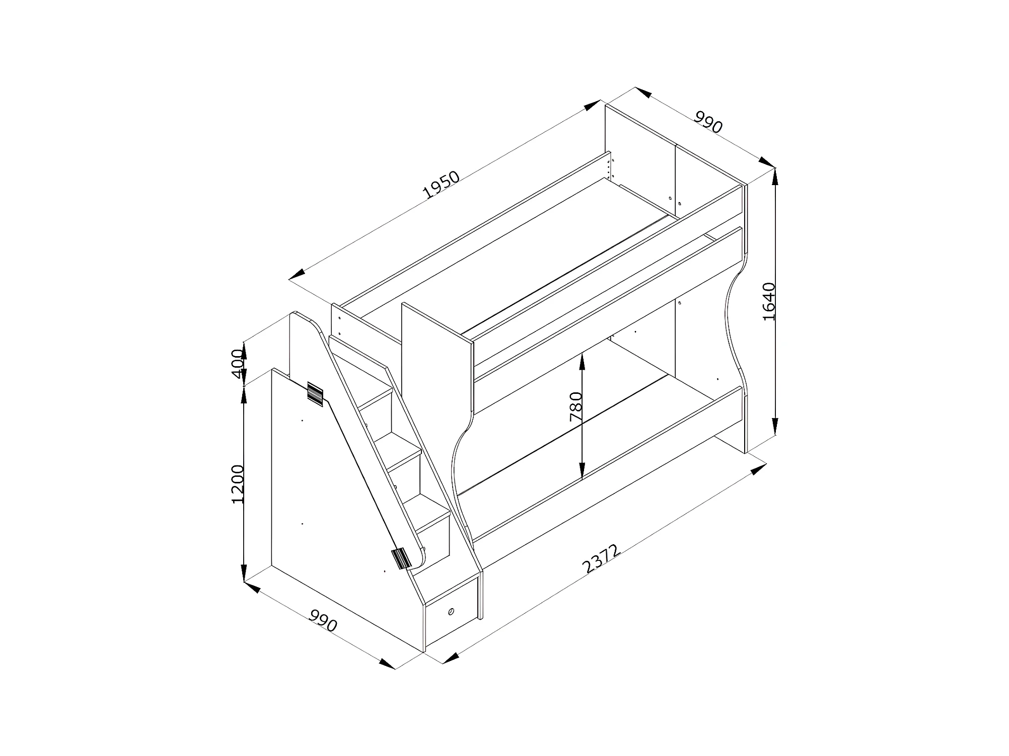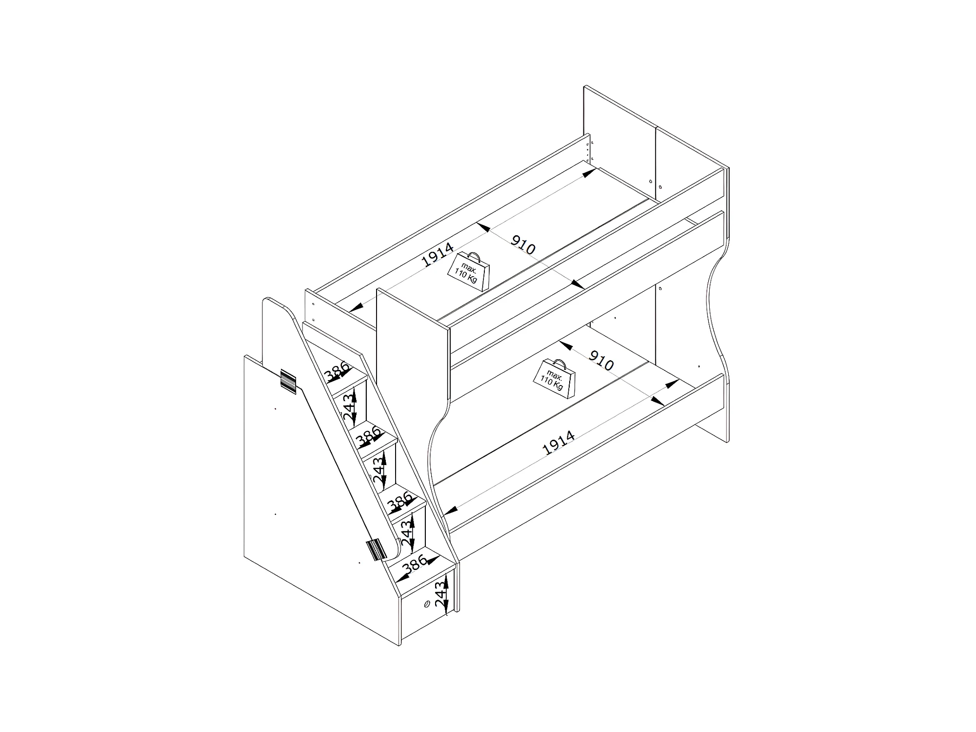 Etagenbett + Schublade weißer 90x190/90x190cm