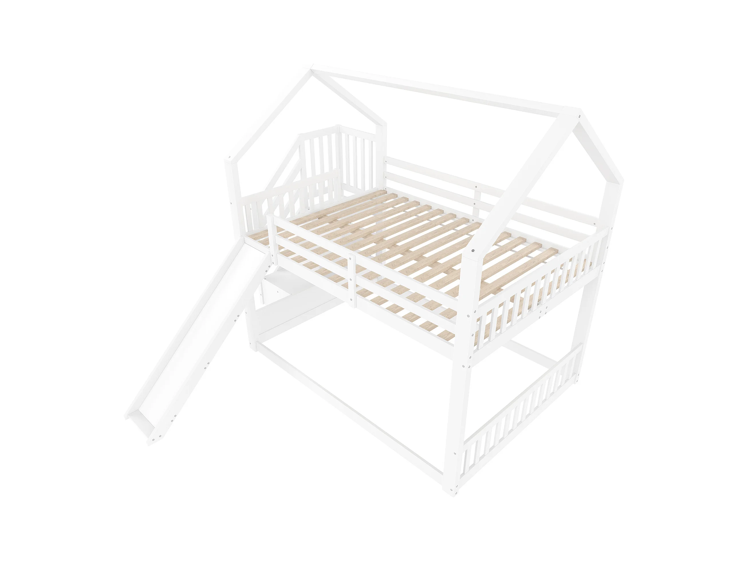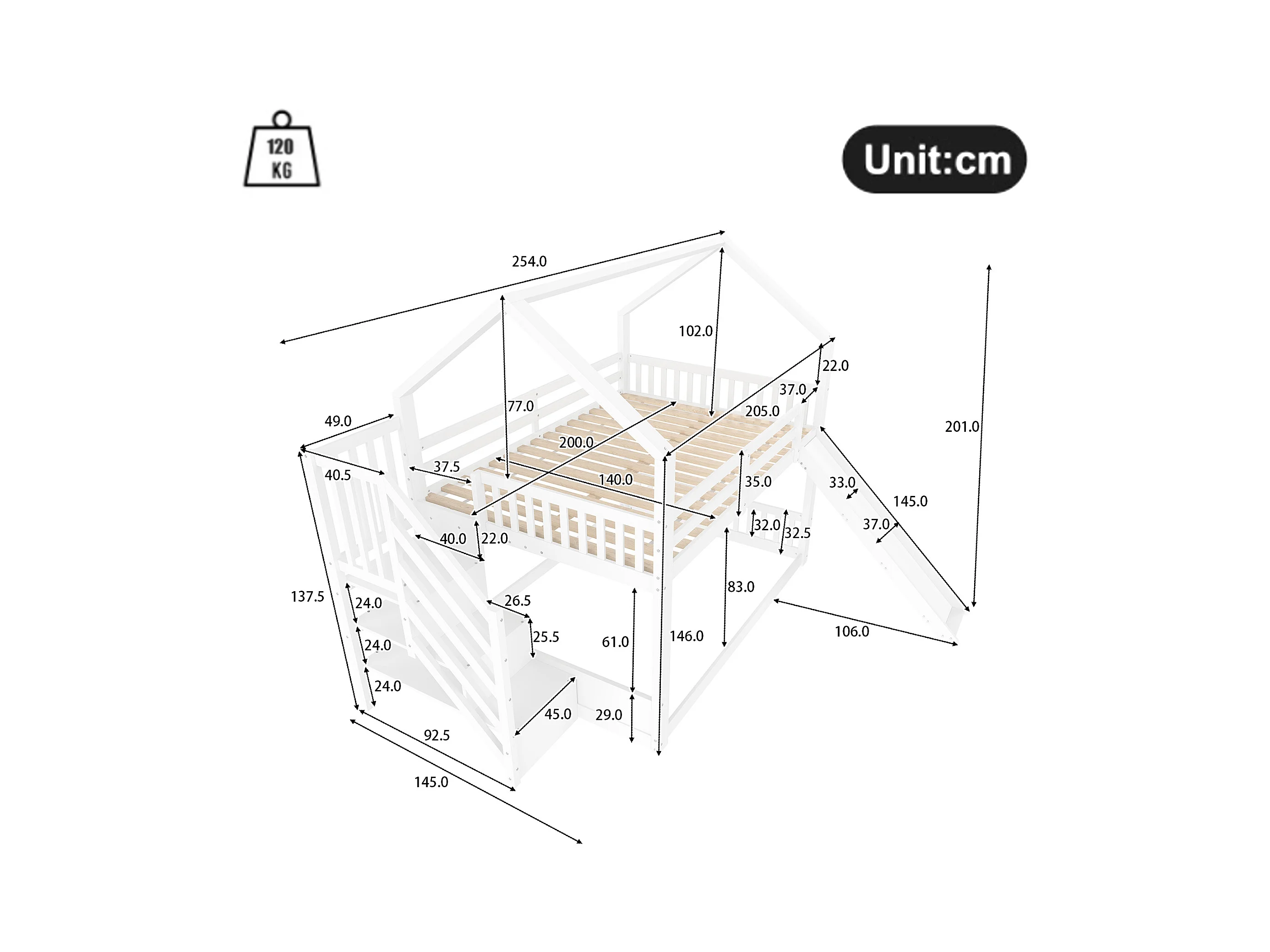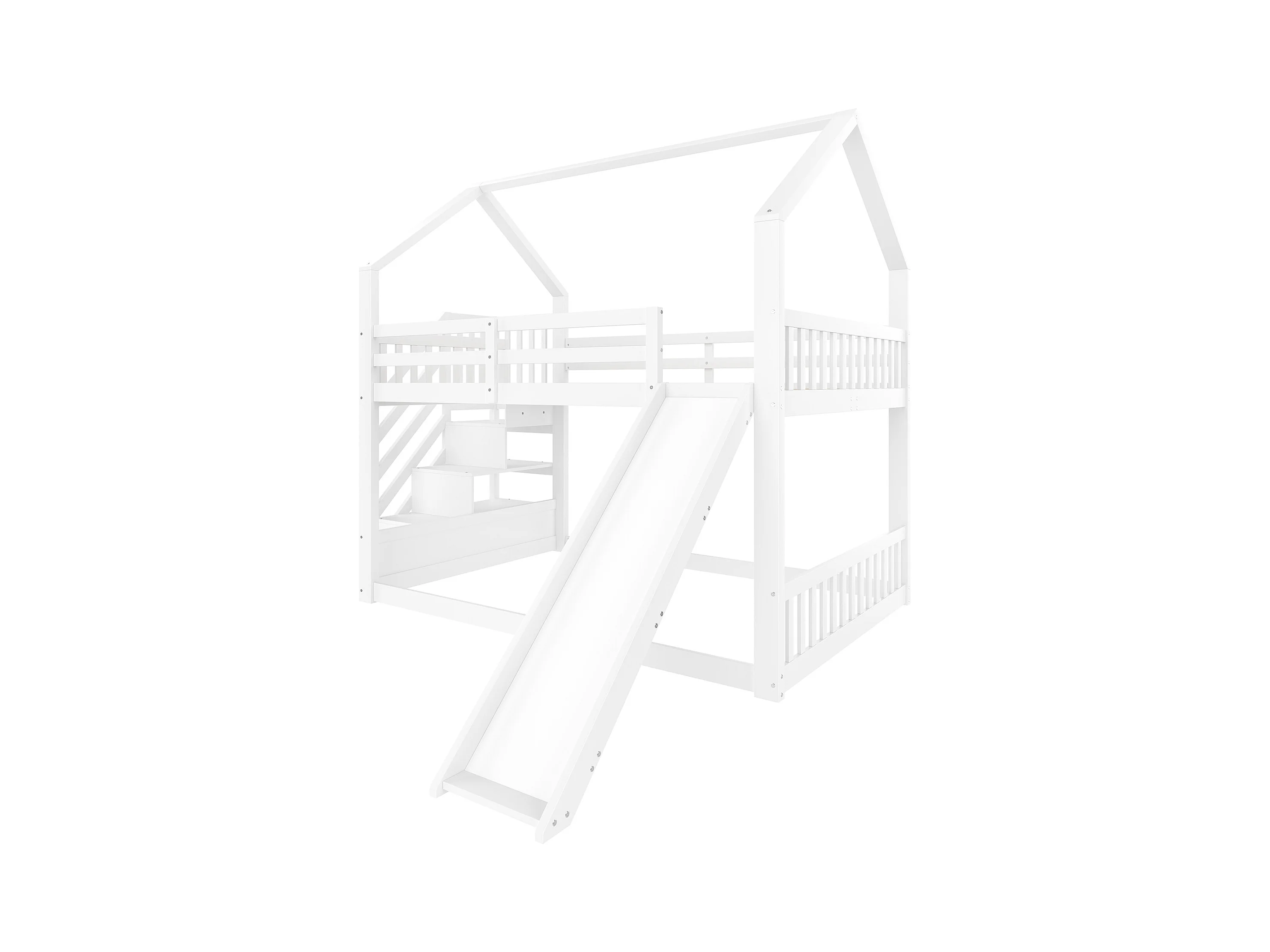Etagenbetten 2 x 140 x 200 cm - MDF-Holz - Stauraumtreppe und Rutsche - Weiß