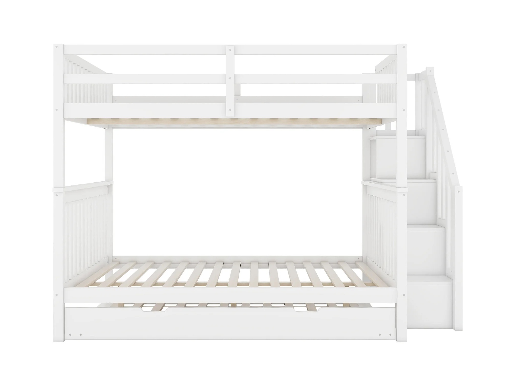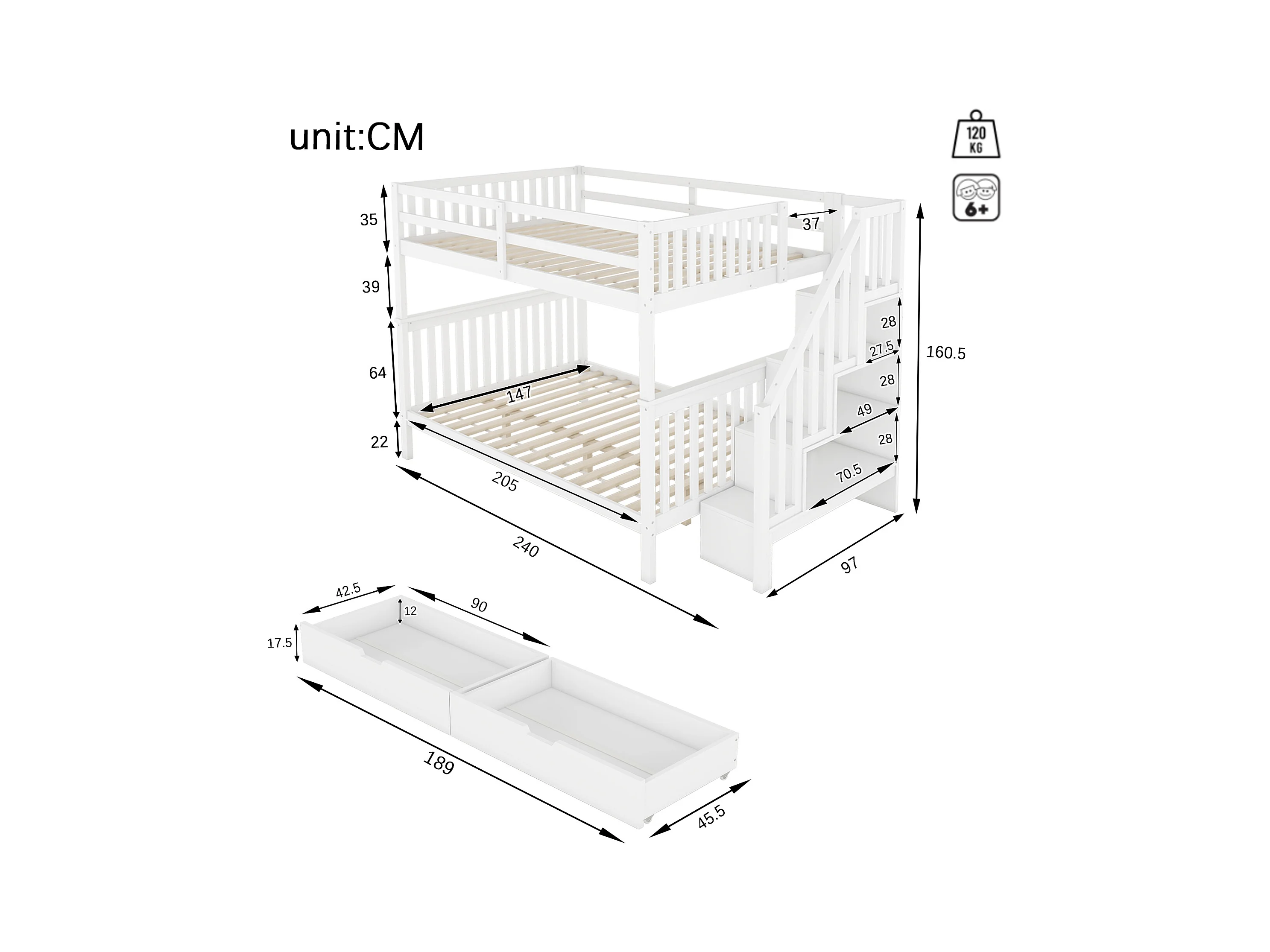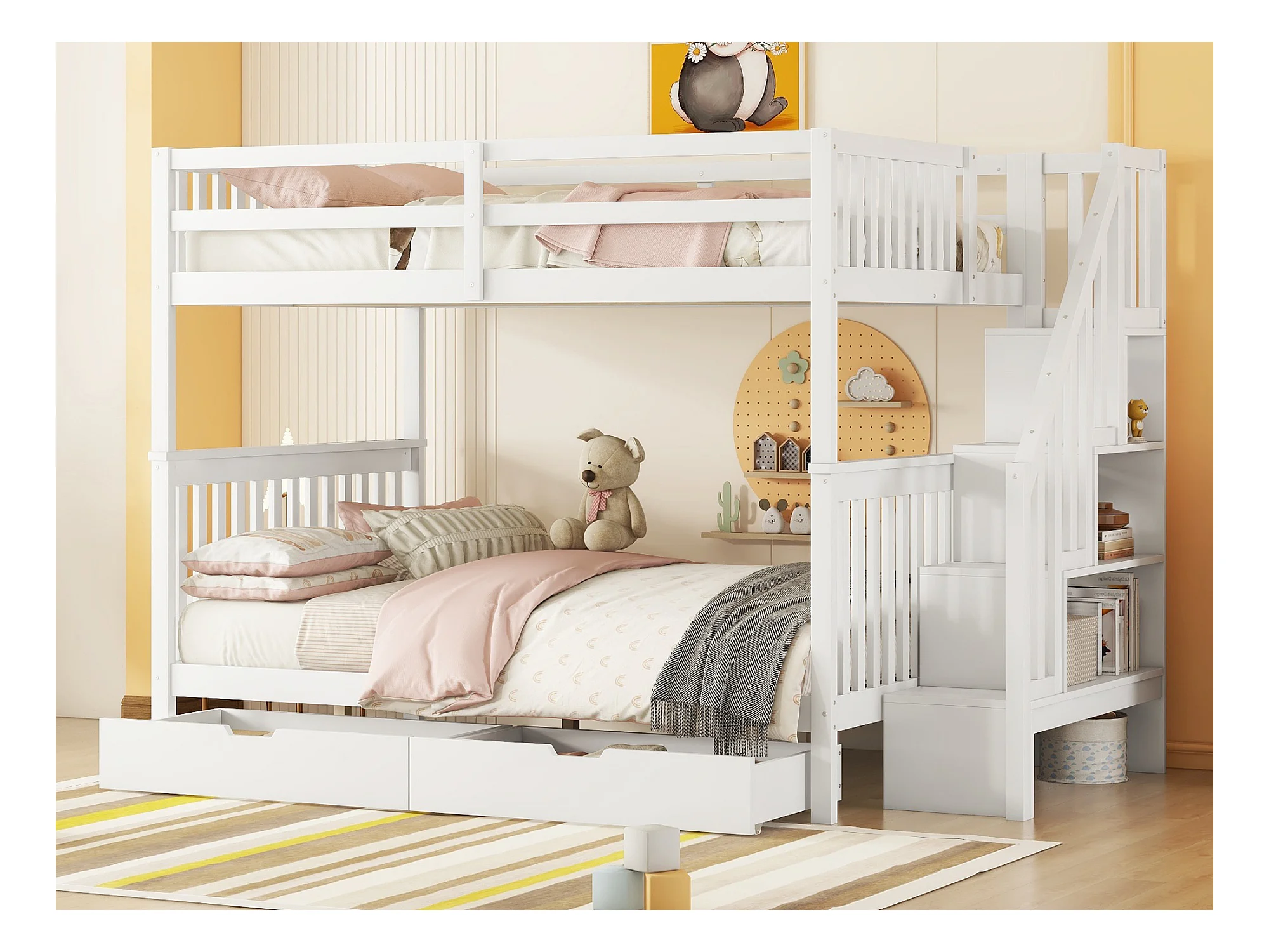 Etagenbetten 2 x 140 x 200 cm für Kinder – Treppenregal + 2 Schubladen – MDF-Holz – Weiß