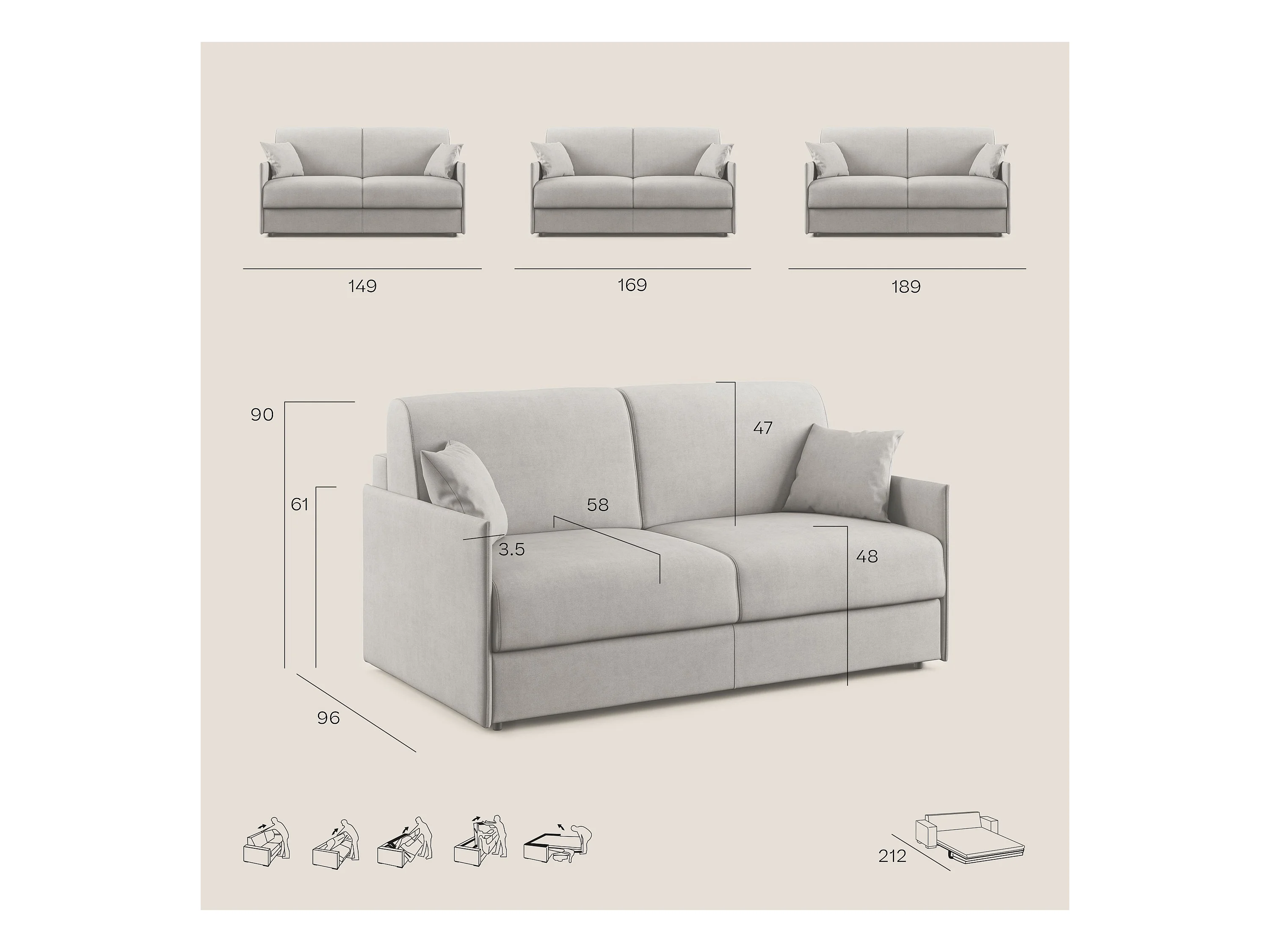 Evans Schlafsofa aus wasserfestem Stoff T13 169 cm (mat. 140x197) beige