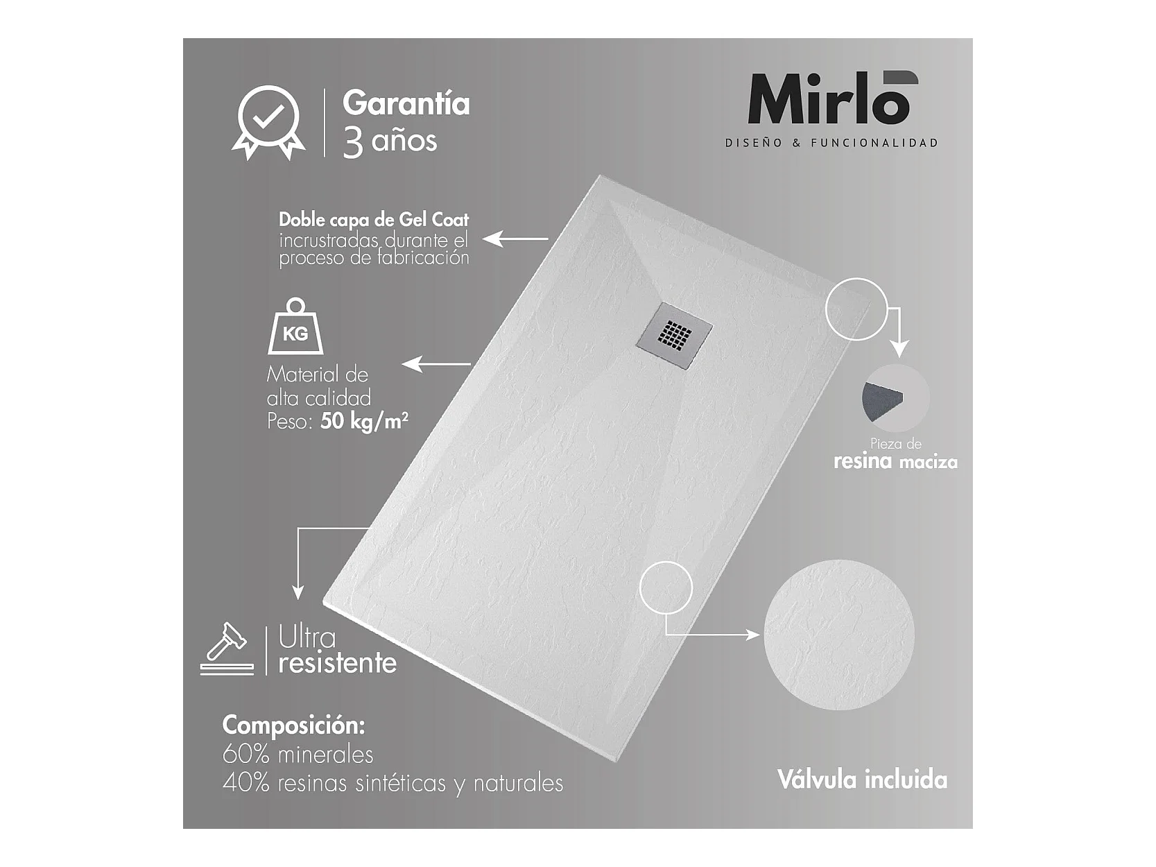 Mineralguss-Duschwanne extra flach ARCO Schieferoptik SAND 80x140 cm