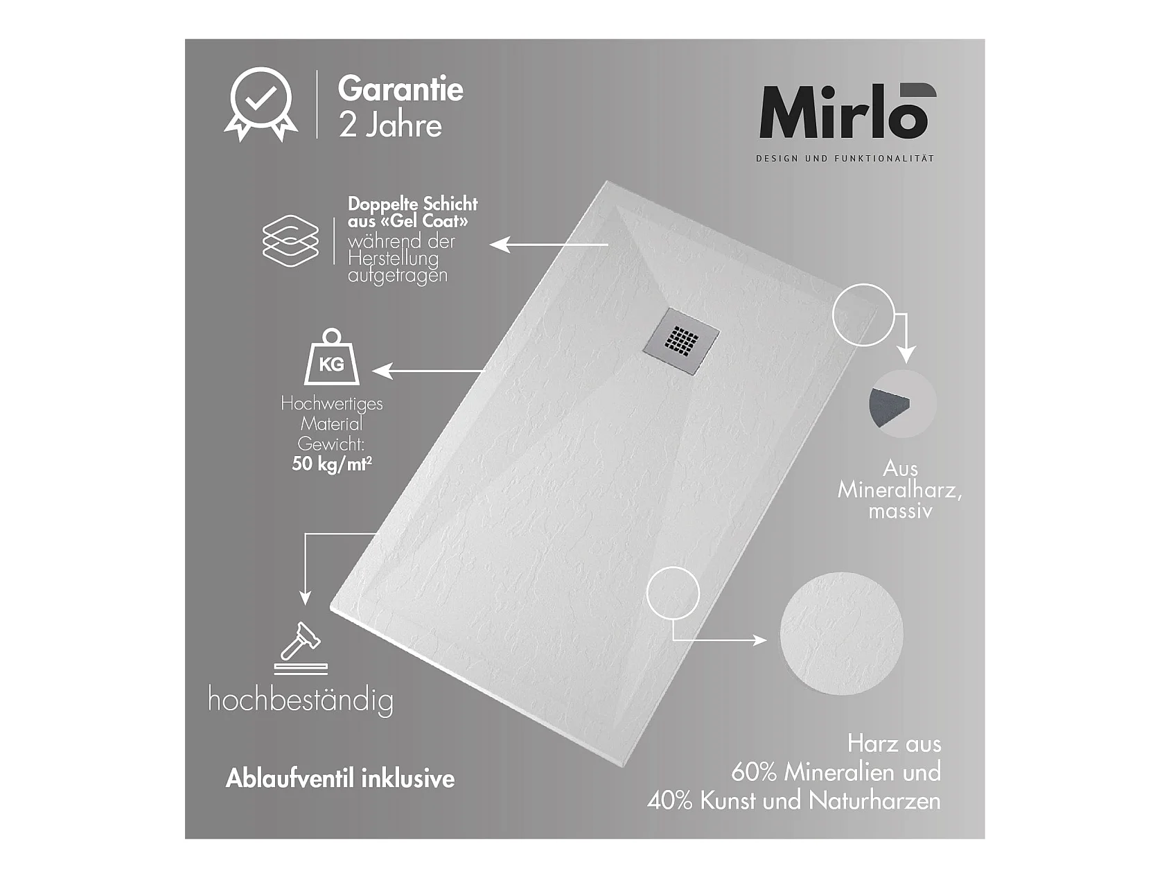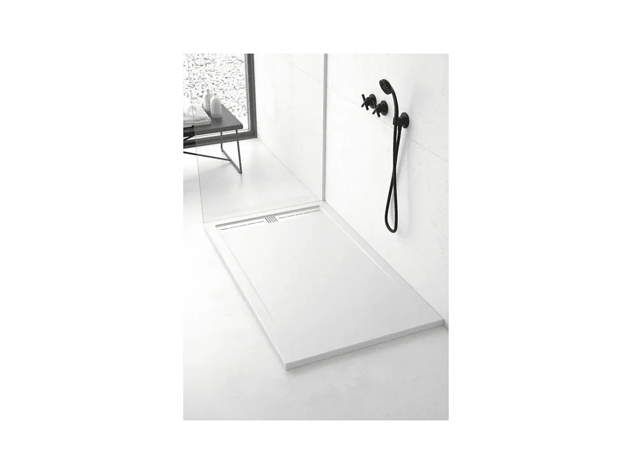Mineralguss-Duschwanne extra flach ARCO Schieferoptik WEIß 90x210 cm