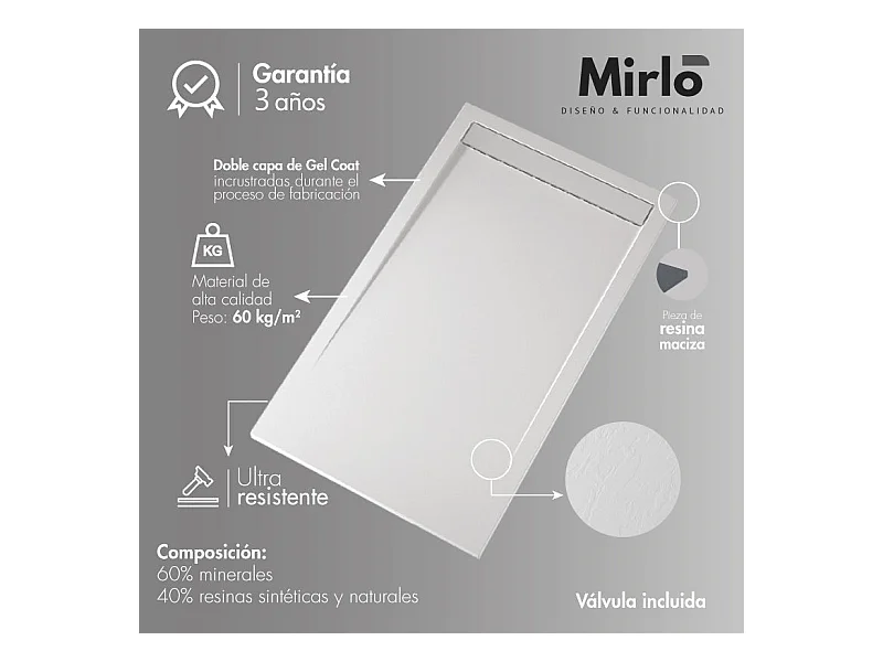 Mineralguss-Duschwanne extra flach CLEVER Schieferoptik ANTHRAZIT 80x210 cm