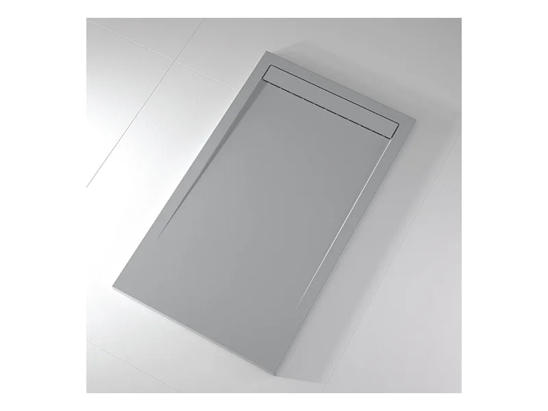 Mineralguss-Duschwanne extra flach CLEVER Schieferoptik GRAU 90x140 cm