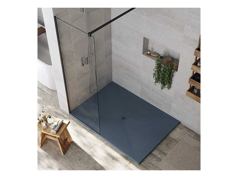 Mineralguss-Duschwanne extra flach DEXA Schieferoptik ANTHRAZIT 80x130 cm