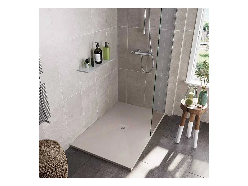 Mineralguss-Duschwanne extra flach DEXA Schieferoptik BEIGE 70x130 cm