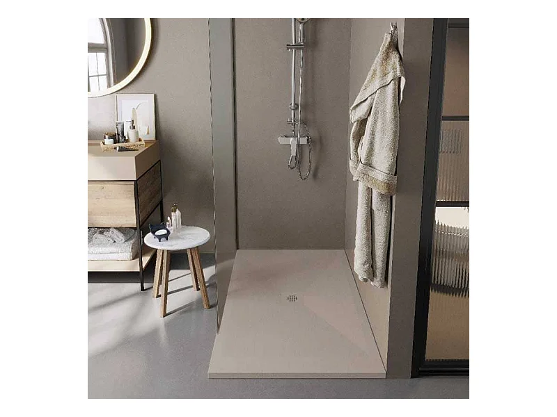 Mineralguss-Duschwanne extra flach DEXA Schieferoptik BEIGE 90x210 cm