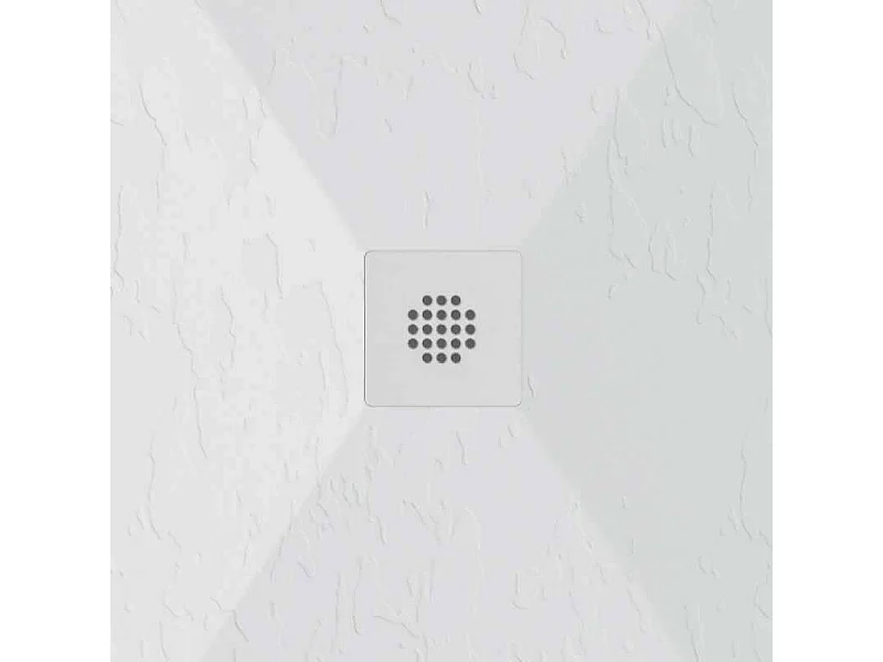 Mineralguss-Duschwanne extra flach DEXA Schieferoptik WEIß 70x90 cm Auslaufschutz in Farbe