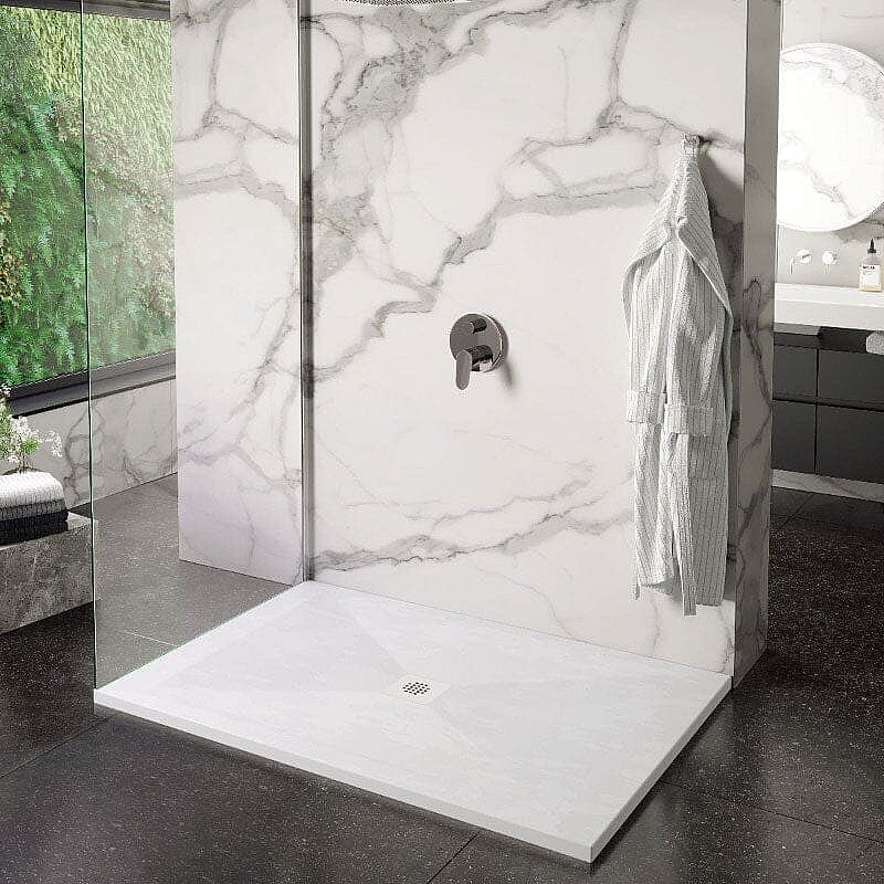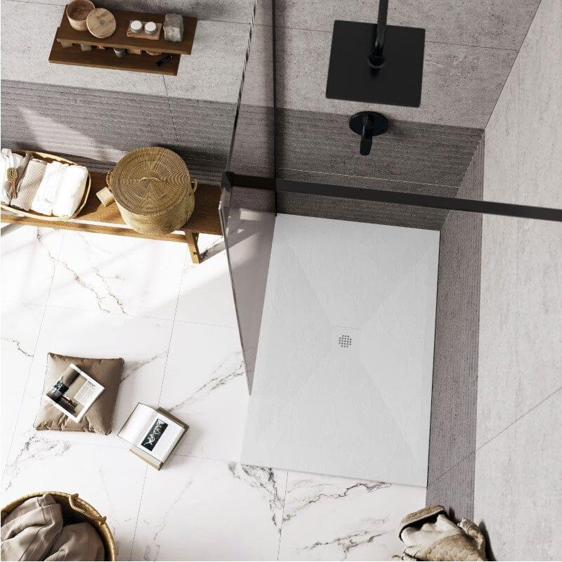 Mineralguss-Duschwanne extra flach DEXA Schieferoptik WEIß 80x90 cm