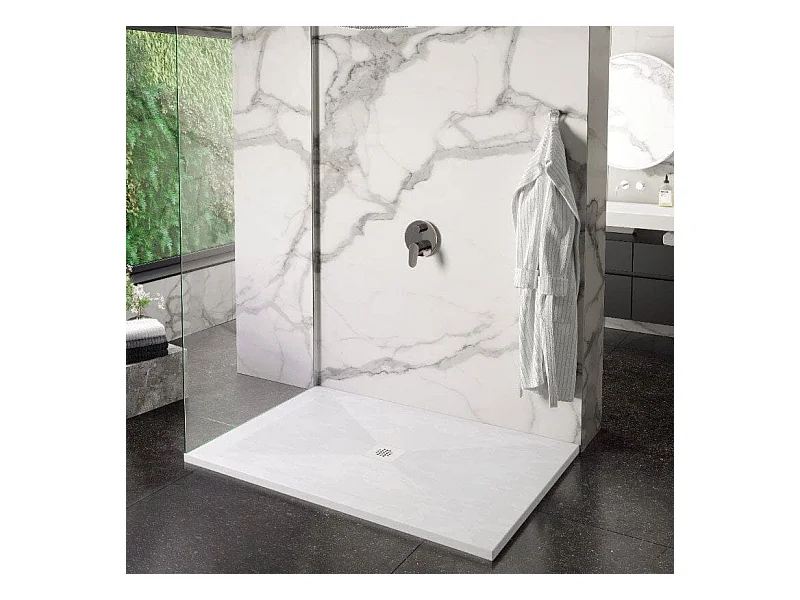 Mineralguss-Duschwanne extra flach DEXA Schieferoptik WEIß 90x150 cm