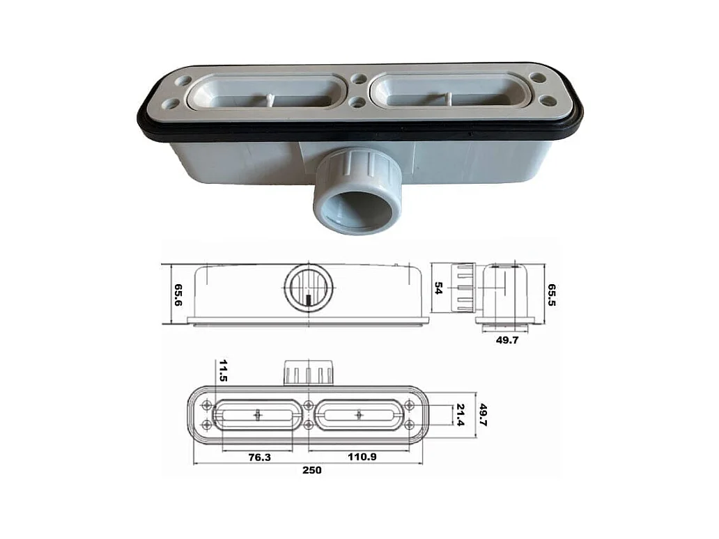 Mineralguss-Duschwanne extra flach LUX Schieferoptik anthrazit 70x160cm Edelstahl in gleicher Farbe
