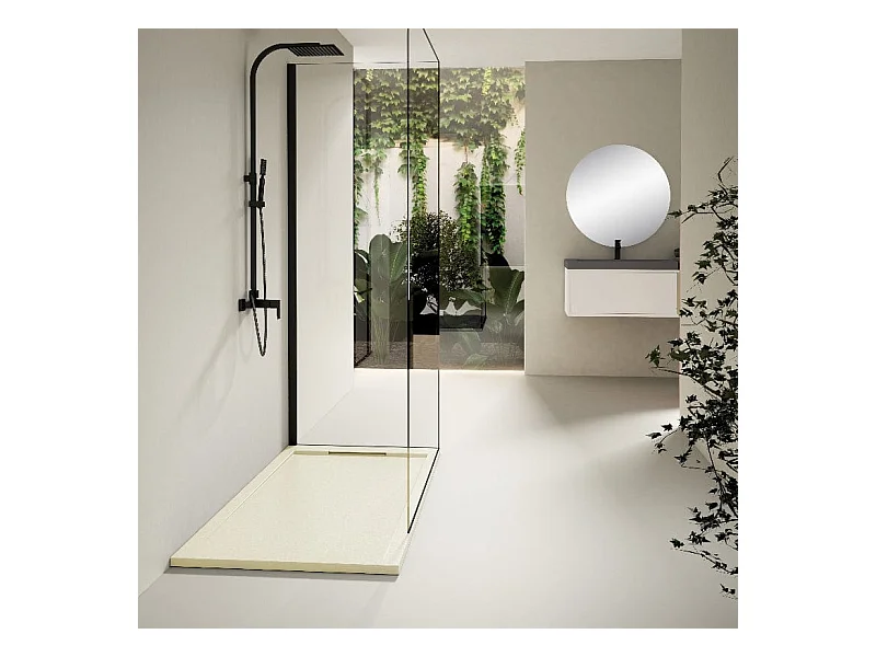 Mineralguss-Duschwanne extra flach LUX Schieferoptik beige 90x100cm Edelstahl in gleicher Farbe