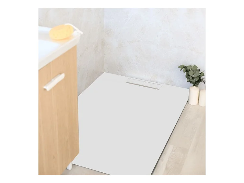 Mineralguss-Duschwanne extra flach LUX Schieferoptik weiß 70x180cm Edelstahl in gleicher Farbe