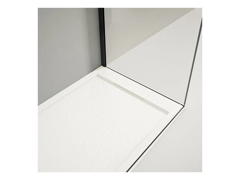 Mineralguss-Duschwanne extra flach LUX Schieferoptik weiß 80x130cm Edelstahl in gleicher Farbe
