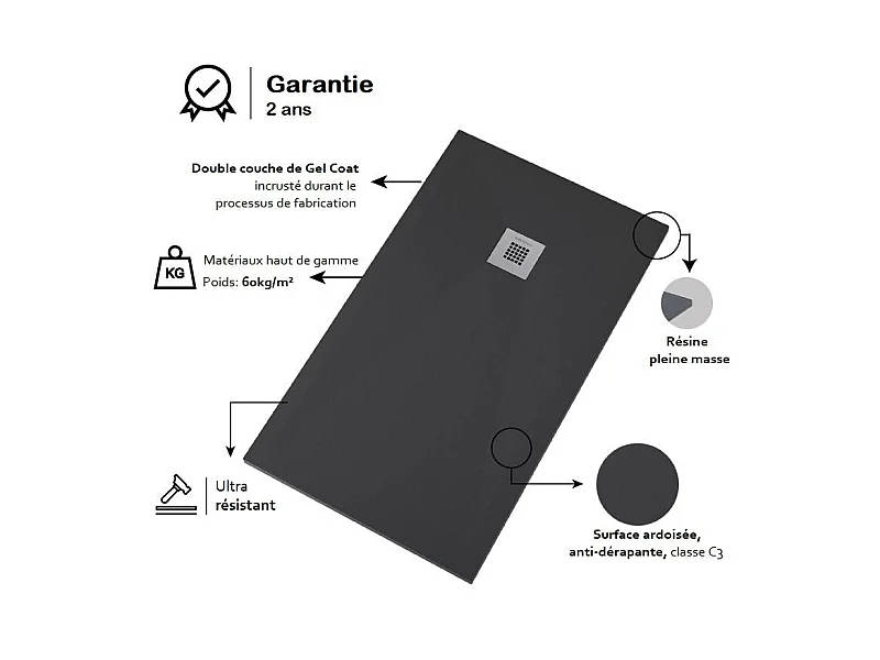 Mineralguss-Duschwanne extra flach ONDA Schieferoptik ANTHRAZIT 90x130 cm