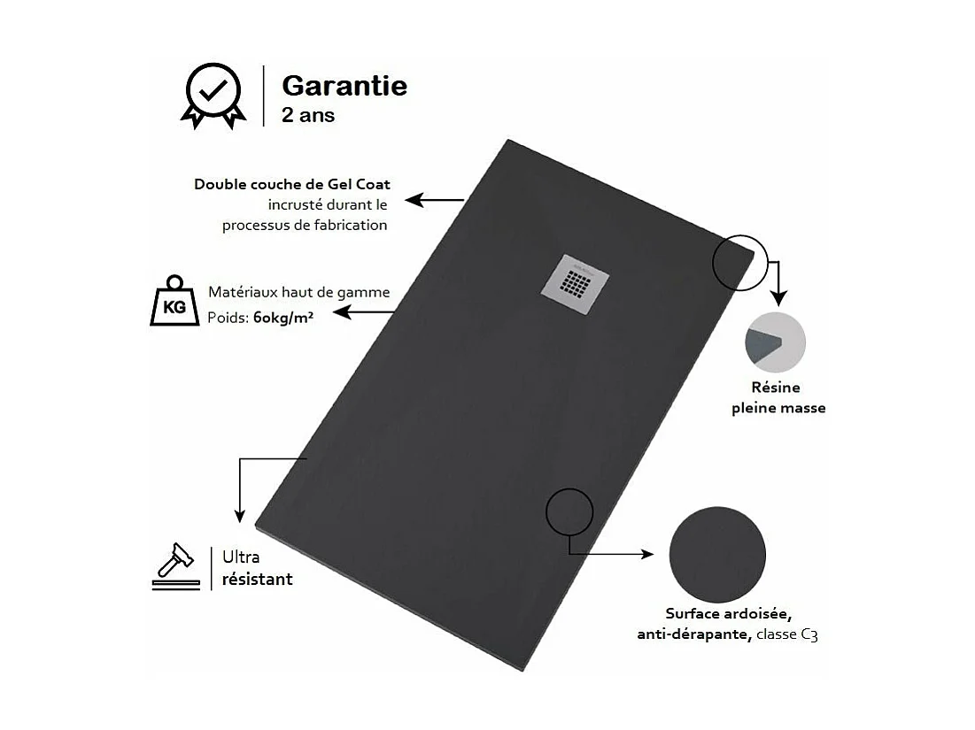 Mineralguss-Duschwanne extra flach ONDA Schieferoptik SAND 100x150 cm