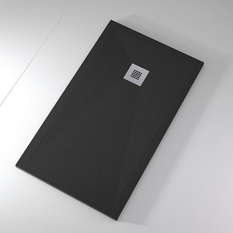 Mineralguss-Duschwanne extra flach ONDA Schieferoptik SCHWARZ 70x180 cm