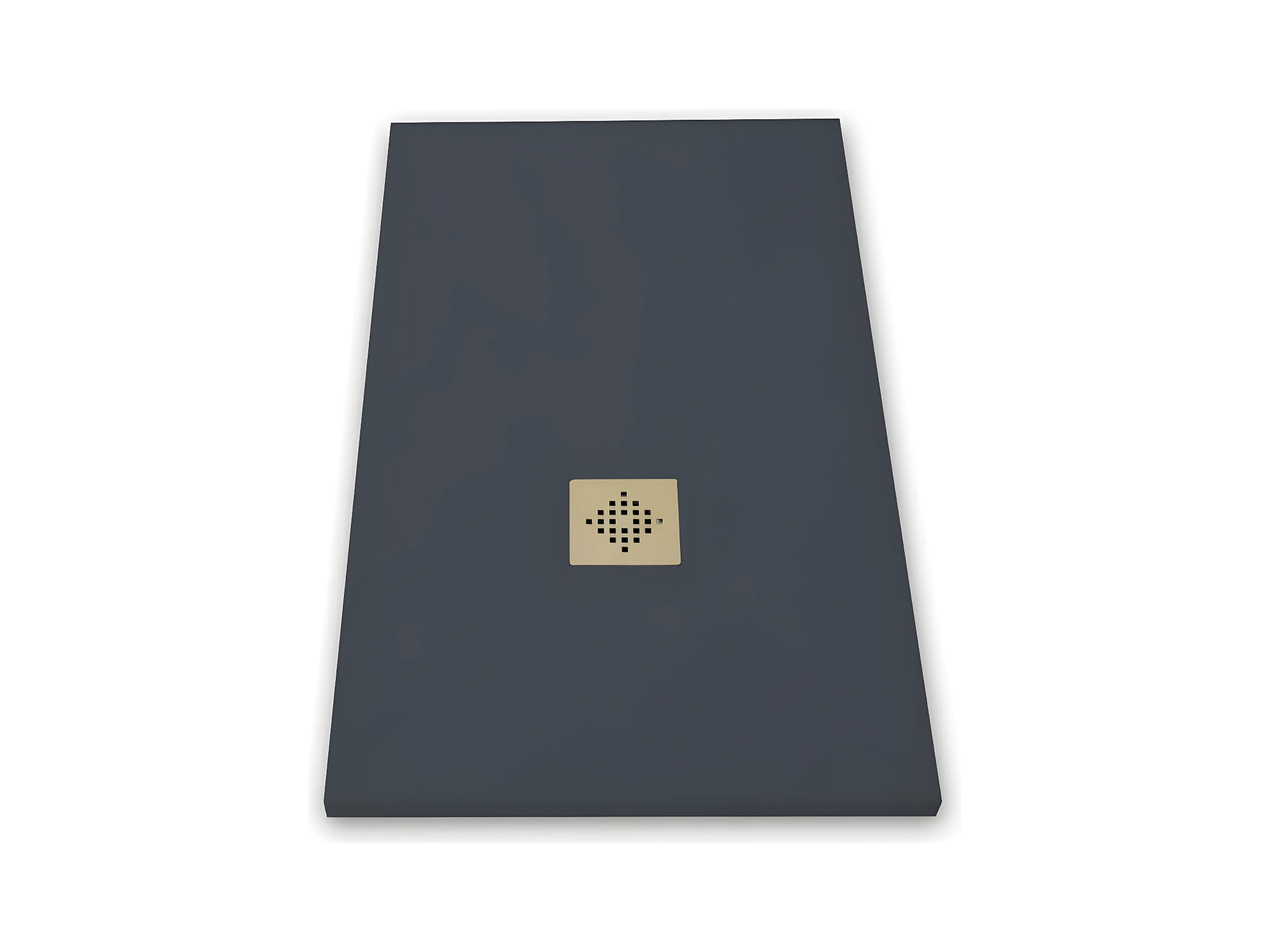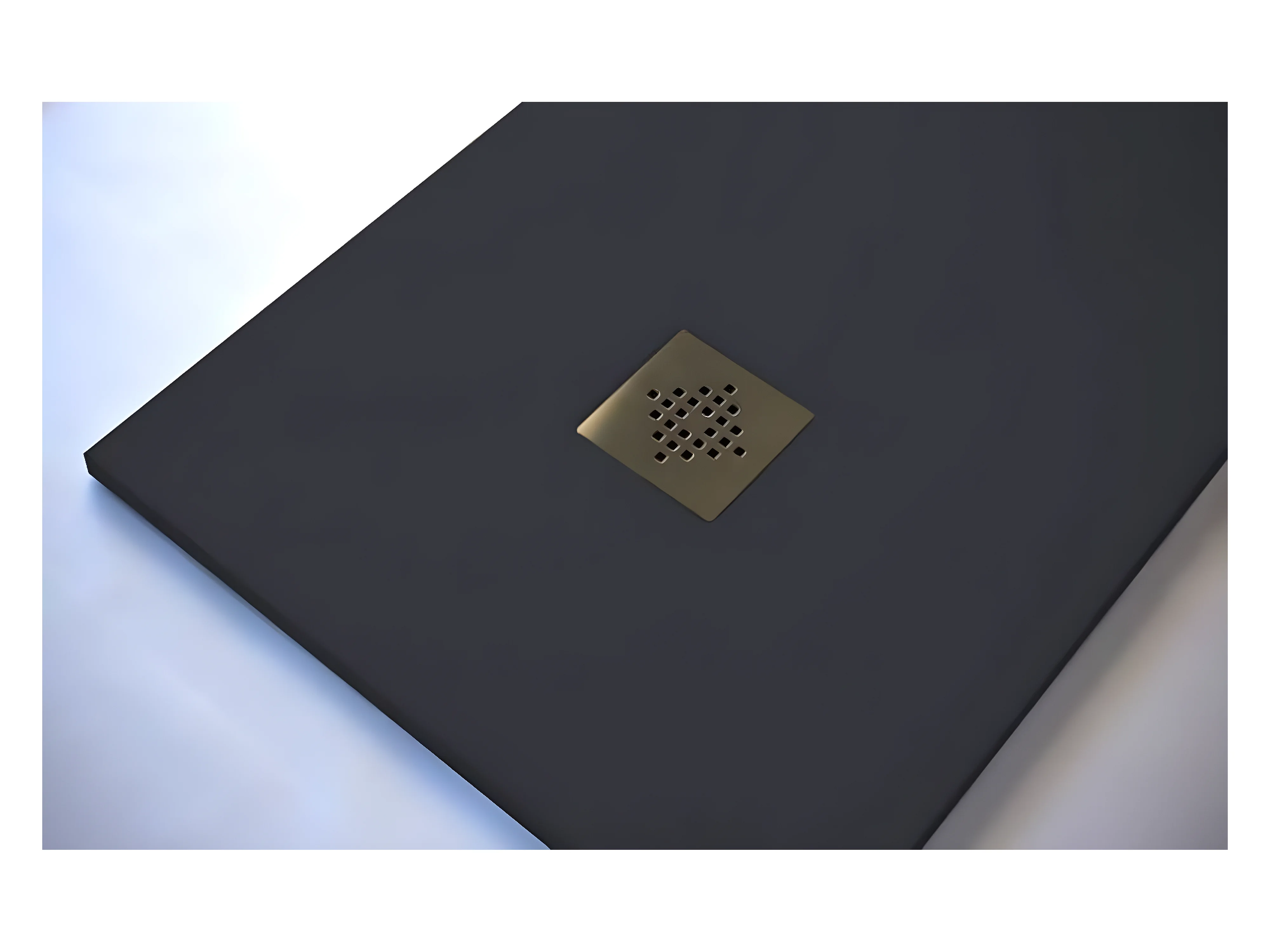 Mineralguss-Duschwanne extra flach PURE Schieferoptik anthrazit 100x150 cm Edelstahl in chrom