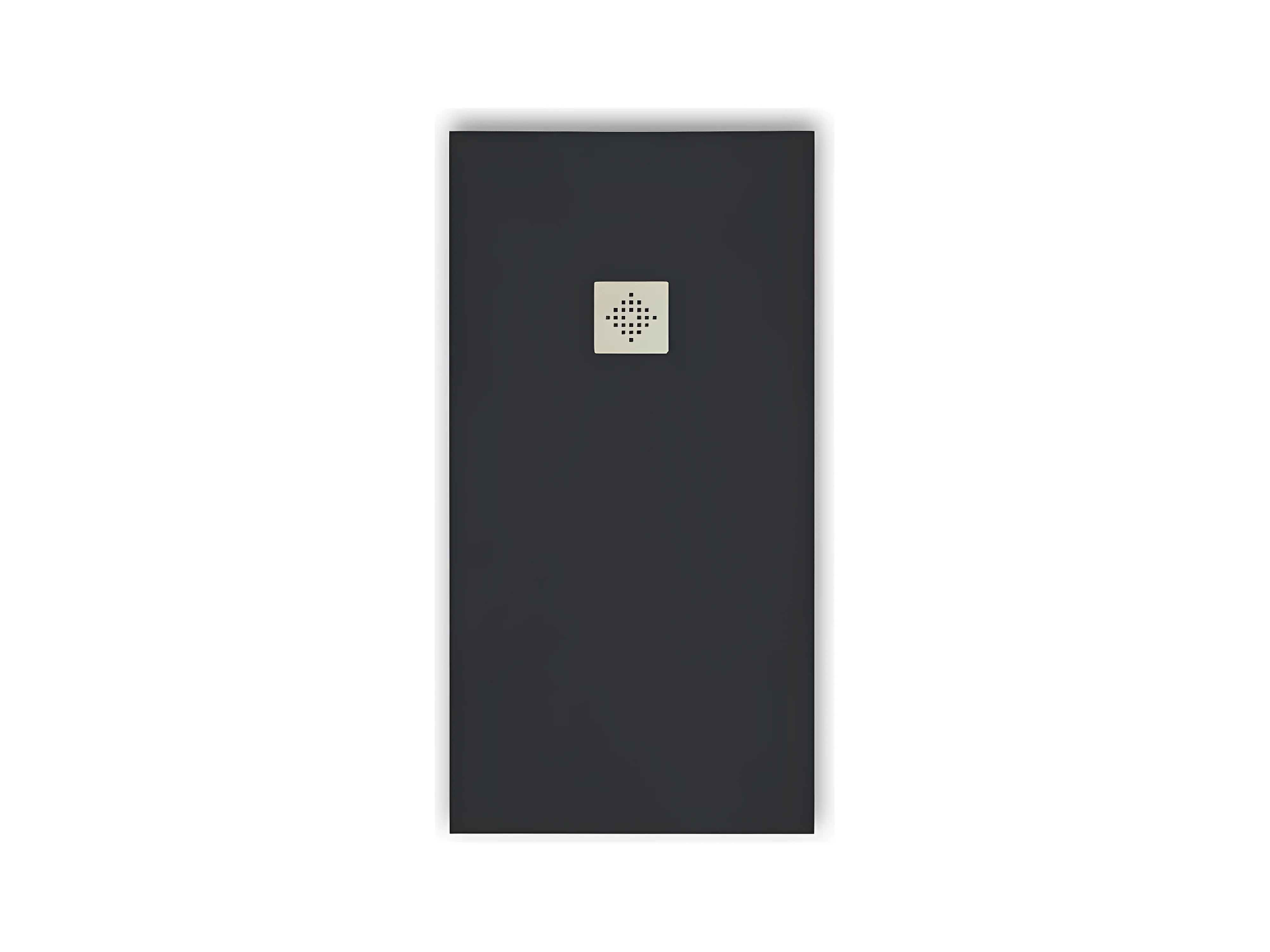 Mineralguss-Duschwanne extra flach PURE Schieferoptik anthrazit 100x170 cm Edelstahl in chrom