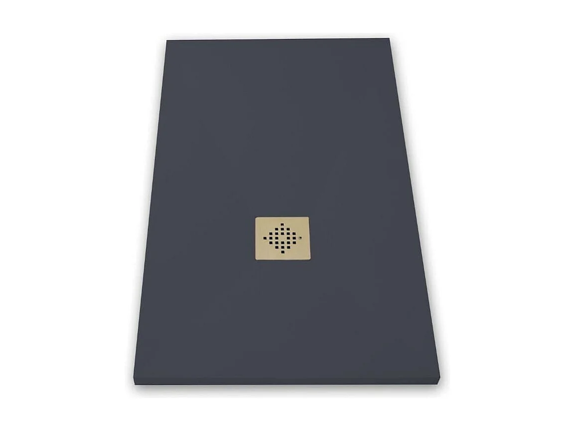 Mineralguss-Duschwanne extra flach PURE Schieferoptik anthrazit 70x150 cm Edelstahl in chrom Ablaufschutz in Chrom