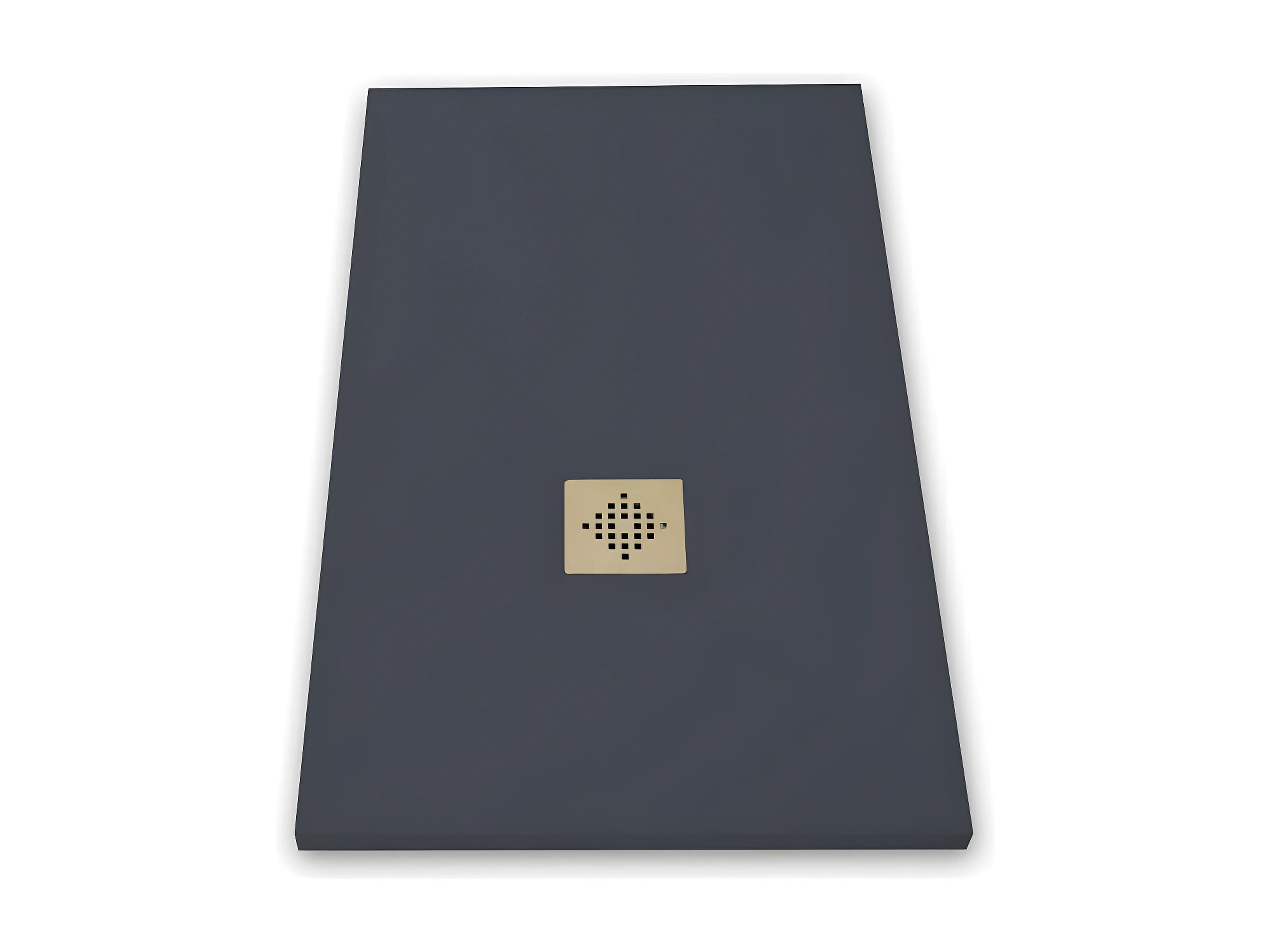 Mineralguss-Duschwanne extra flach PURE Schieferoptik anthrazit 90x140 cm Edelstahl in chrom