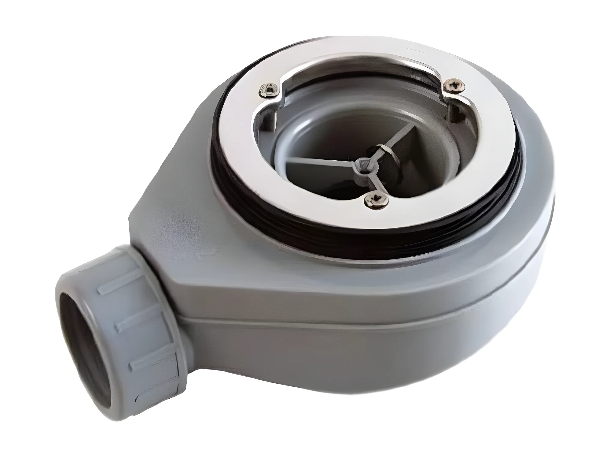Mineralguss-Duschwanne extra flach PURE Schieferoptik beige 100x150 cm Edelstahl in chrom