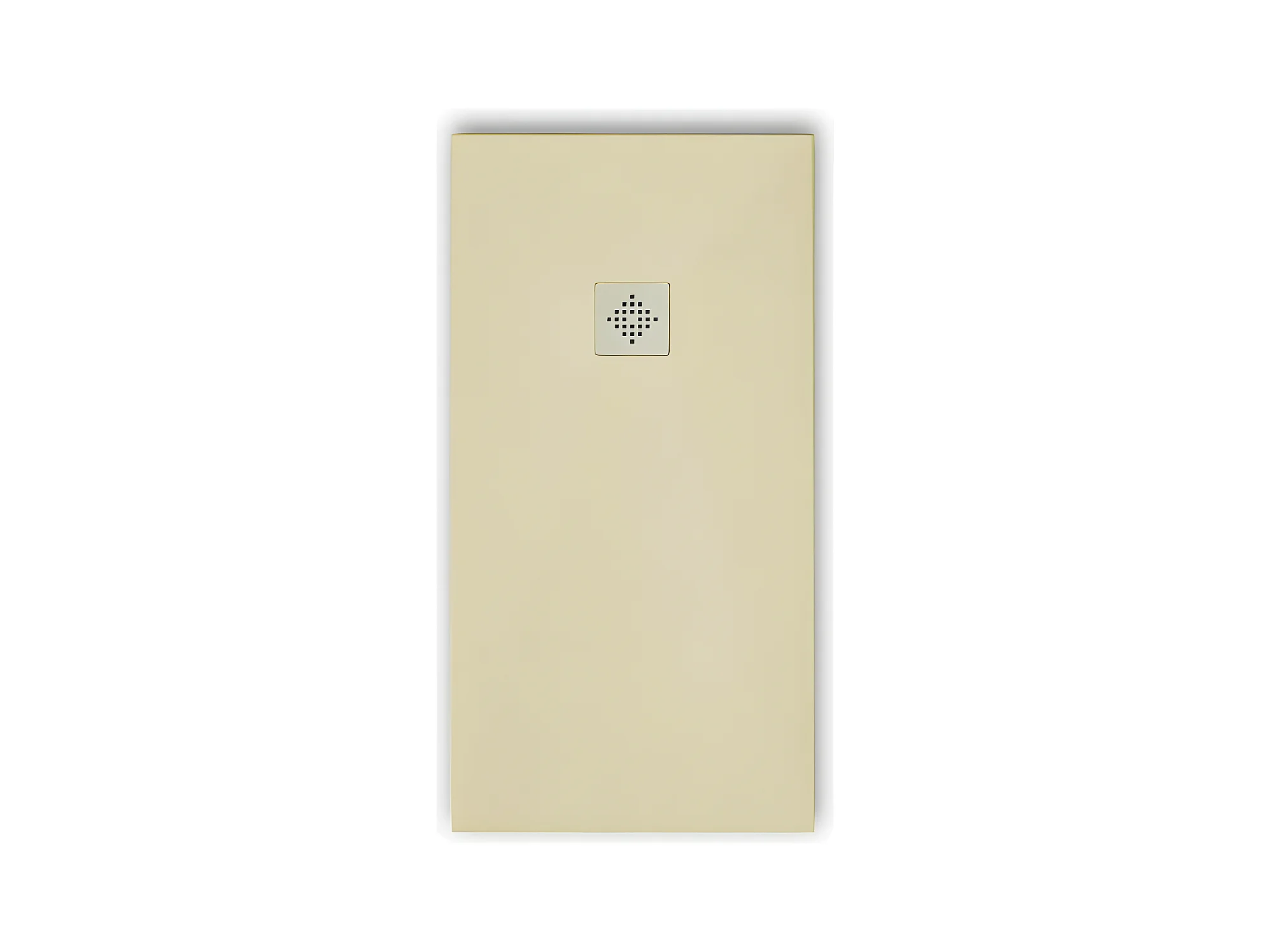 Mineralguss-Duschwanne extra flach PURE Schieferoptik beige 70x110 cm Edelstahl in chrom